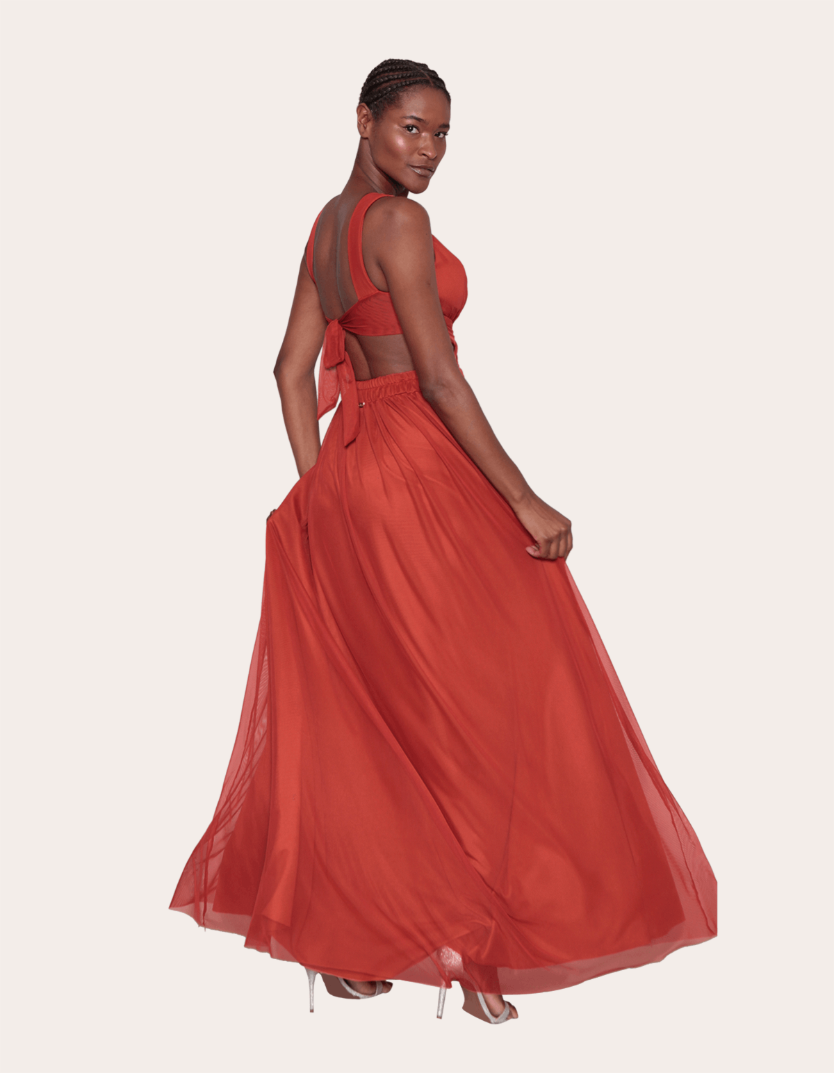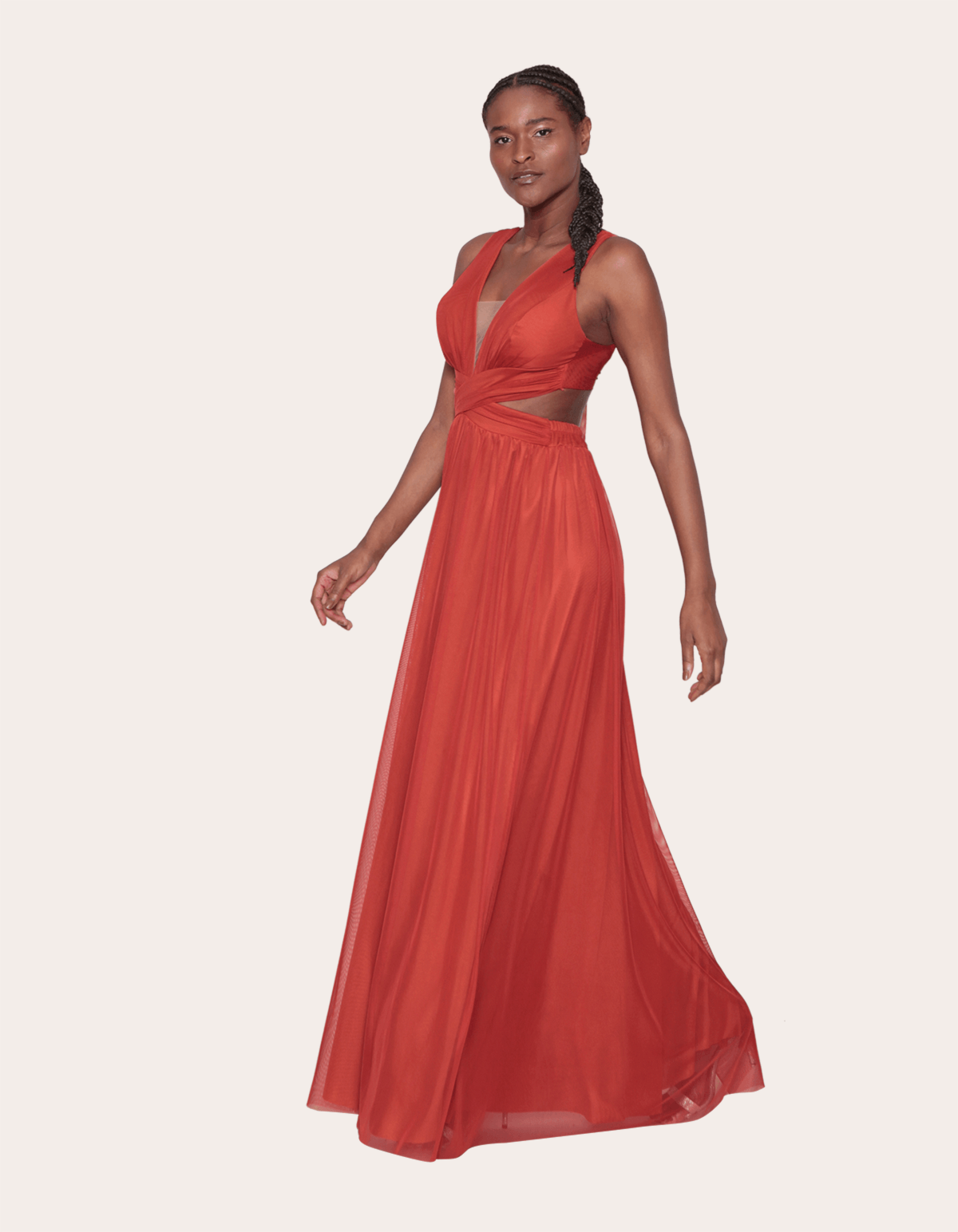 Vestido tule longo, cavado com bojo, cós cruzado e detalhe em tule transparente no decote, possui elástico atrás na cintura e amarração nas costas. ideal para festas tanto de dia, quanto a noite. além de lindo, é um vestido com um caimento perfeito, promovendo a valorização da silhueta com elegância.
