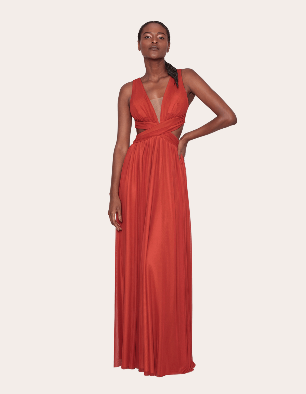 Vestido longo cavado tule cós cruzado