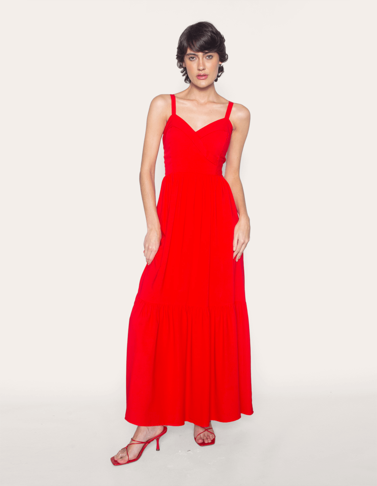 Vestifo longo, modelagem com busto meia taça e corpete , deixando o corpo acinturado, possui bojo e lastex nas costas. o vestido longo, com um design elegante e moderno. um clássico coringa que agrega sofisticação ao seu guarda-roupas.