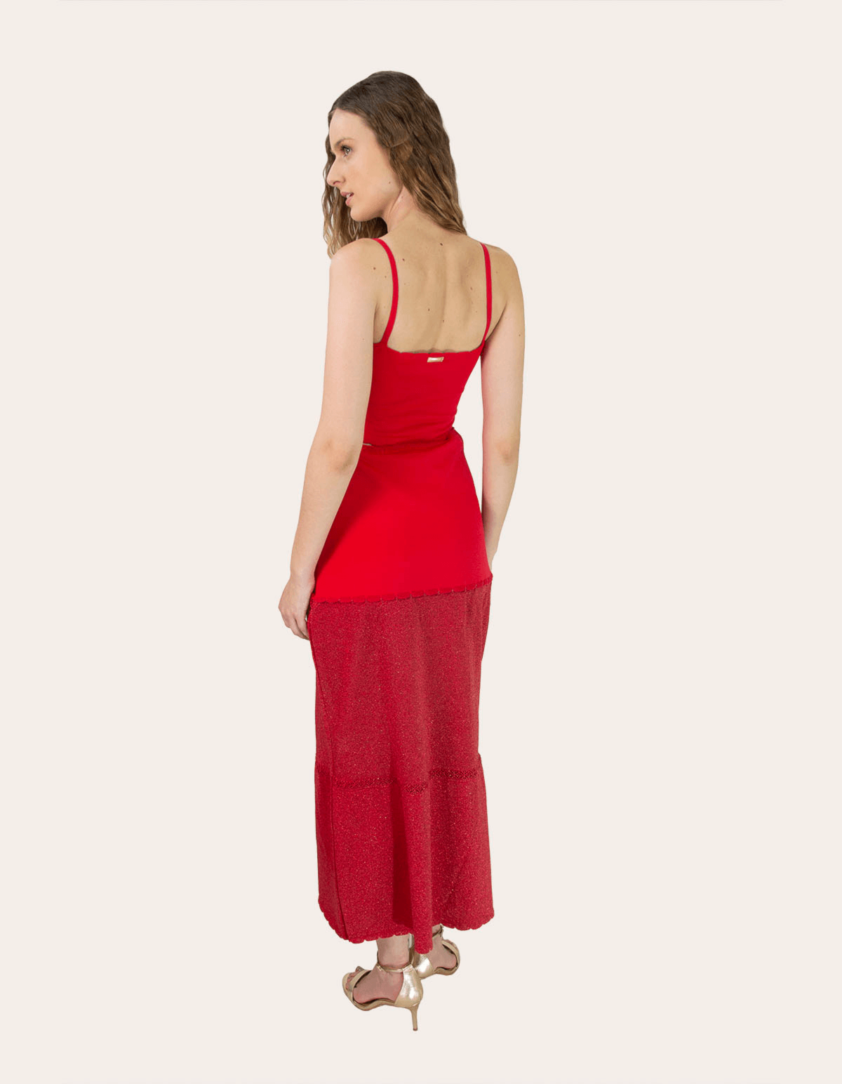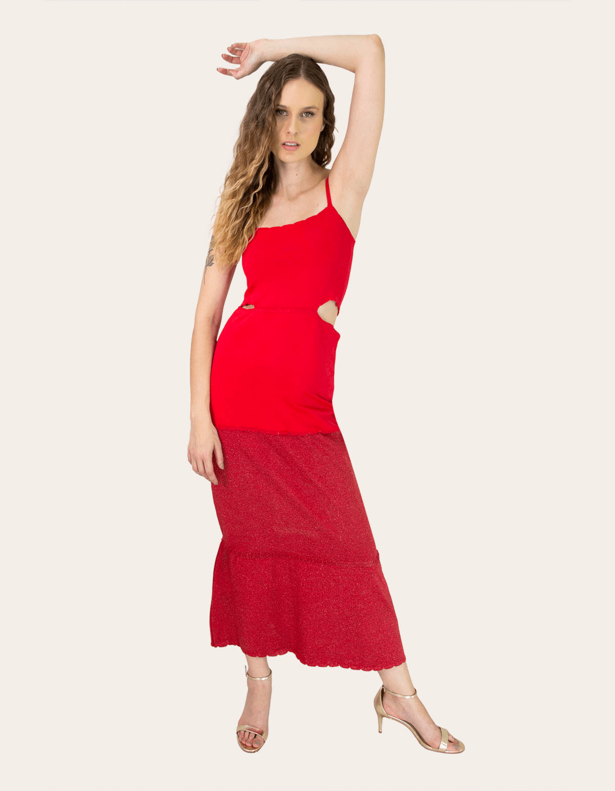 Vestido longo tricot de alcinha e cós vazado, barra em lurex. perfeito para arrasar!!!