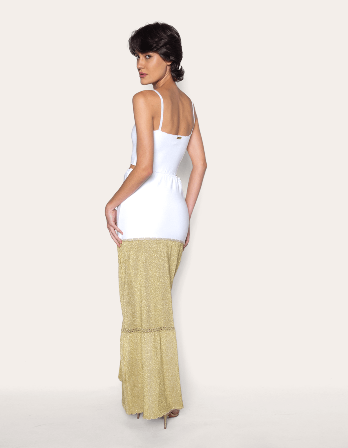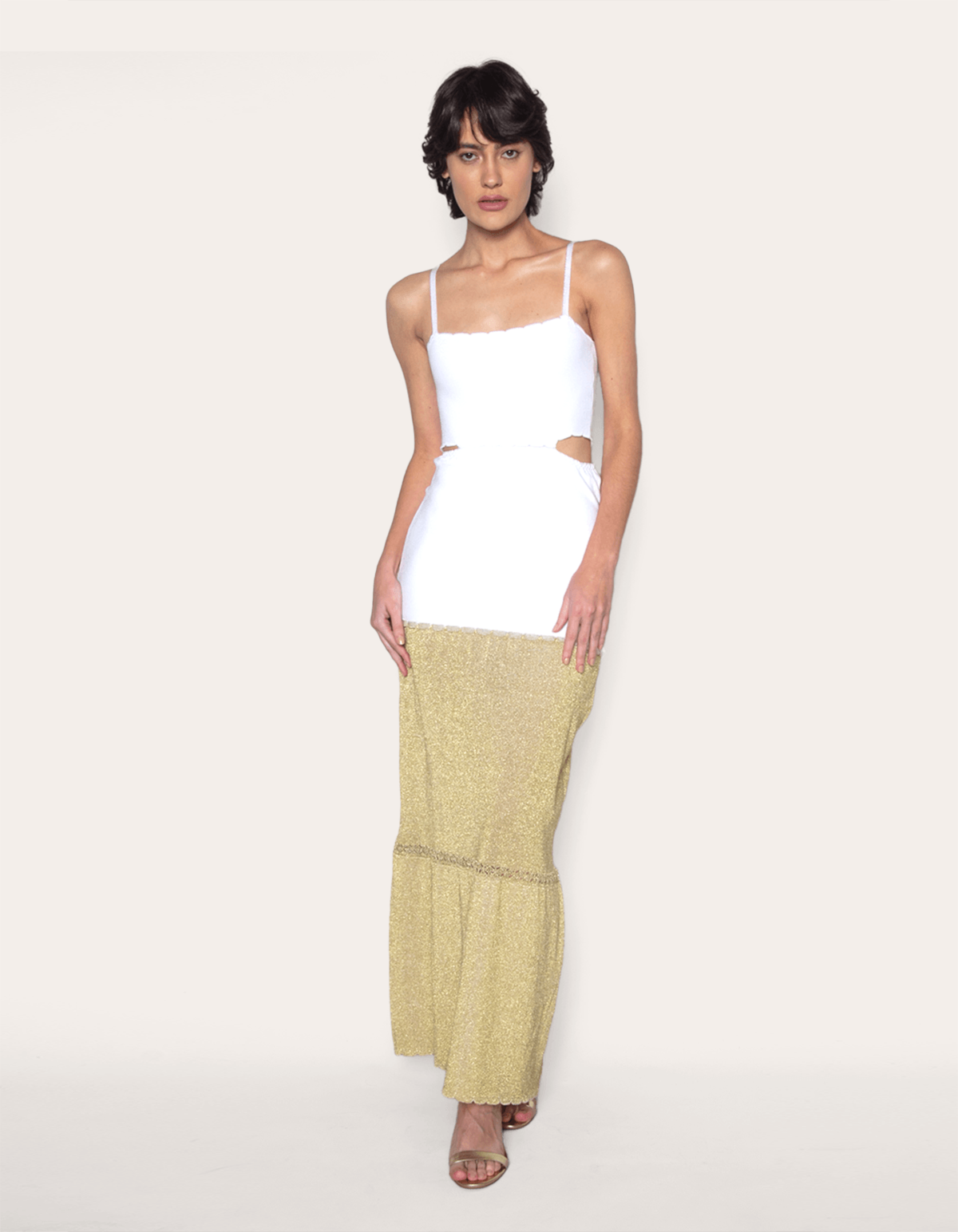 Vestido longo tricot de alcinha e cós vazado, barra em lurex. perfeito para arrasar!!!