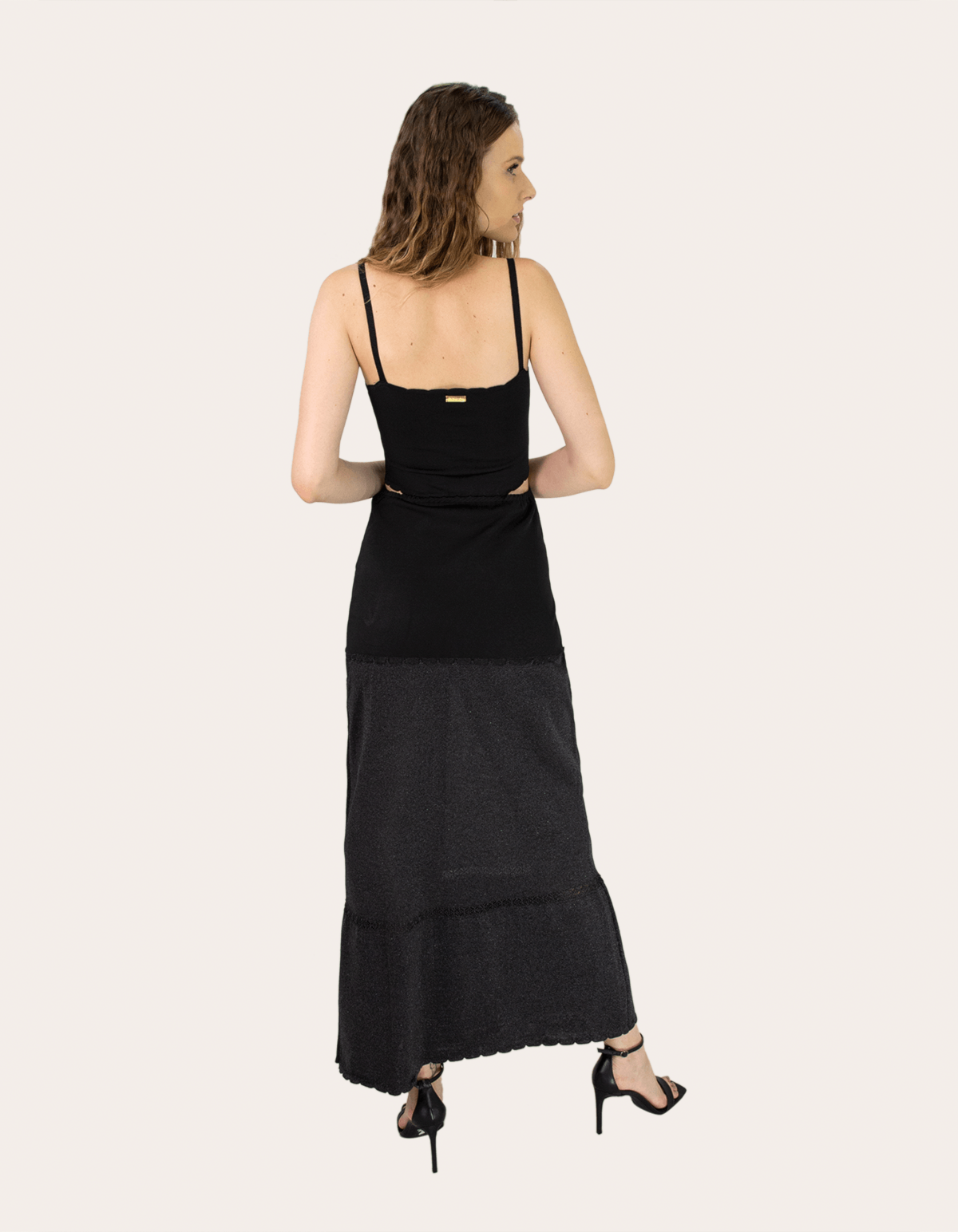 Vestido longo duo tricot lurex