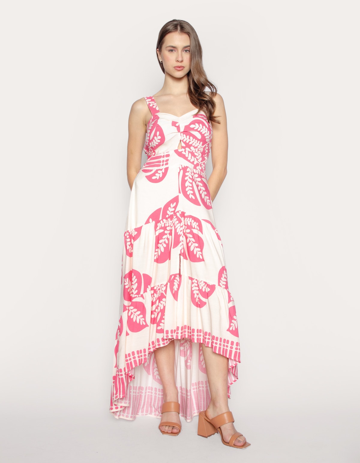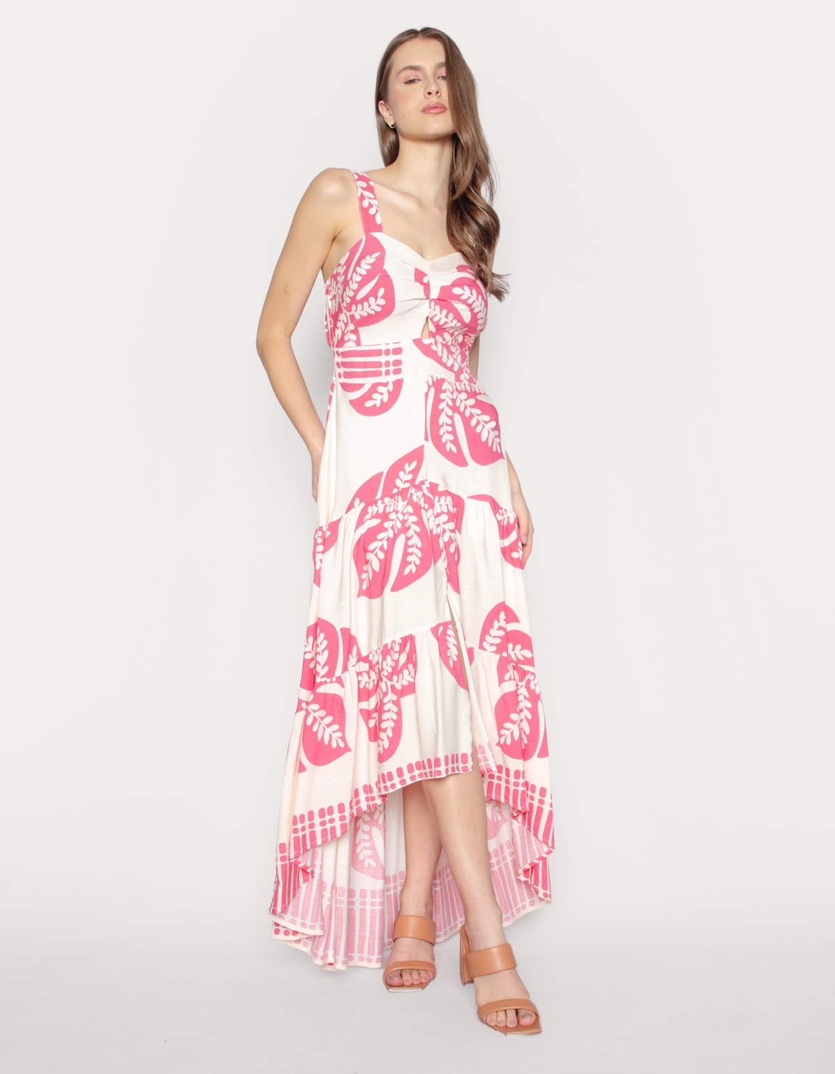 Vestido longo estampado com alças médias, bojo, detalhe discreto vazado na cintura, possui lastex nas costas e uma fenda na frente. além disso, o tecido de viscose se destaca por ser maleável e de toque macio, possuindo bom caimento e frescor, sendo ideal para o uso em dias mais quentes. combine com tênis baixo para um visual urbano, ou uma rasteirinha para um visual romântico!!