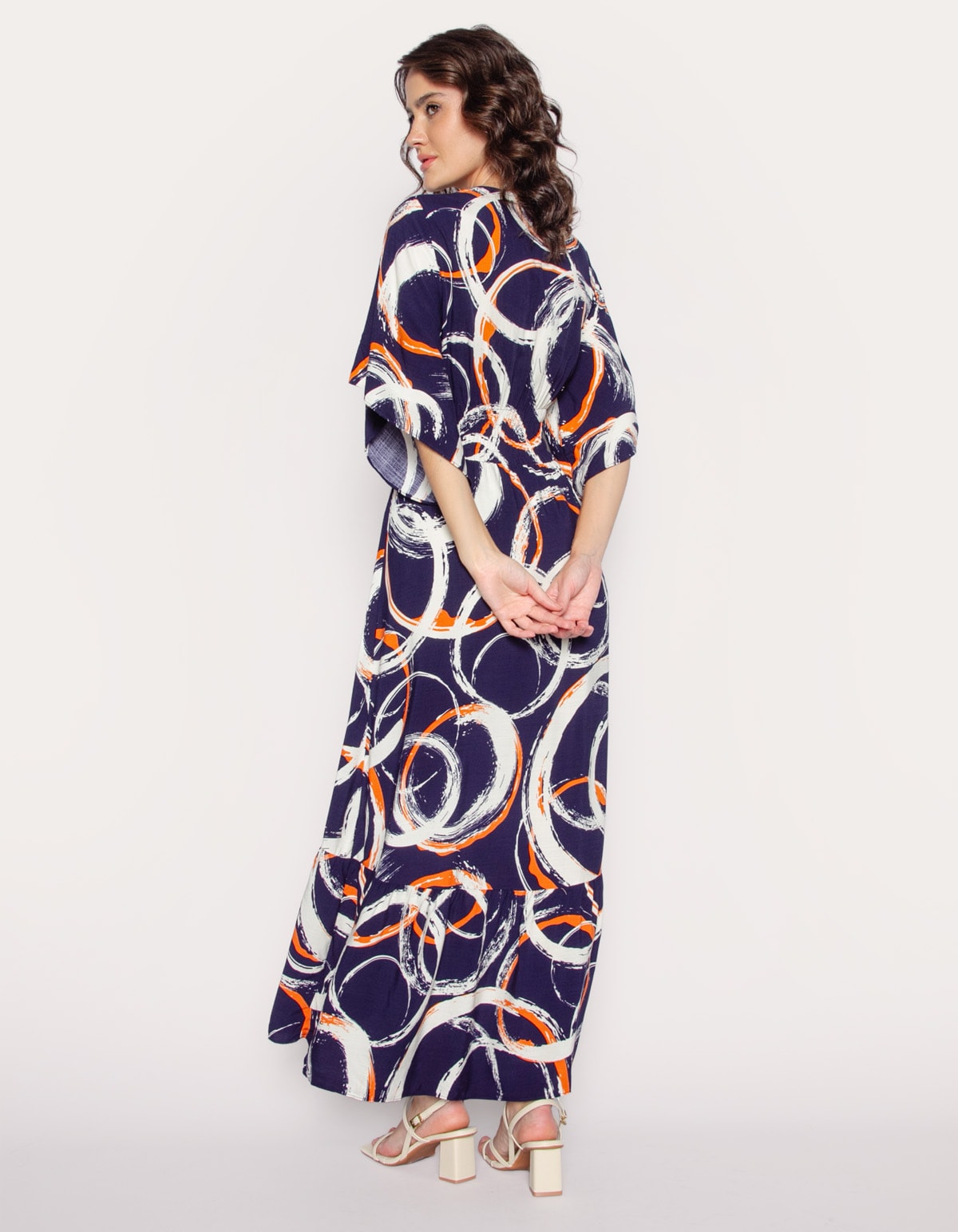 Vestido longo hi-lo manga godê