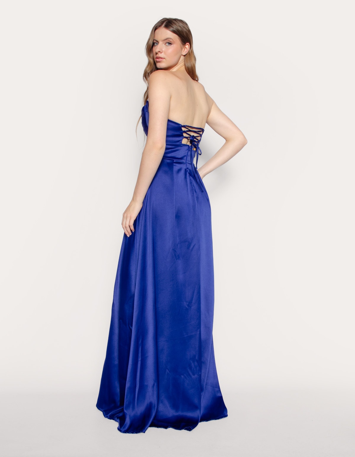 Vestido de festa longo, esse modelo traz uma dose de sofisticação, sendo perfeito para eventos especiais e ocasiões formais. o decote tomara que caia é a definição de elegância atemporal. a aplicação do laço no busto proporciona um toque sofisticado, com bojo para um visual confortável, fechamento em zíper e amarração nas costas mantem a elegância do design. esse modelo é o destino definitivo para mulheres que buscam glamour, elegância e um toque de magia em cada evento especial.