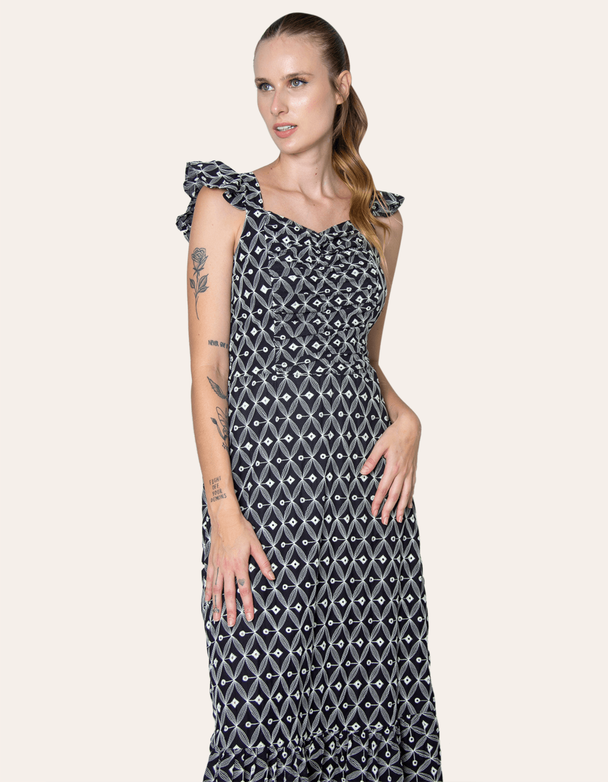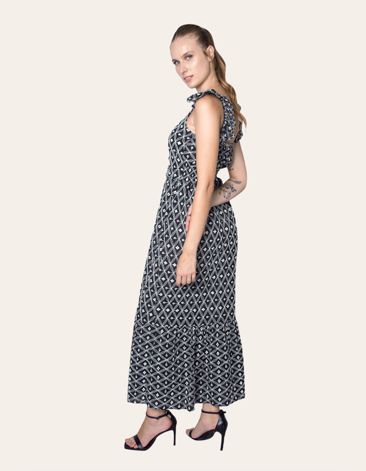 Vestido longo laise alça babado