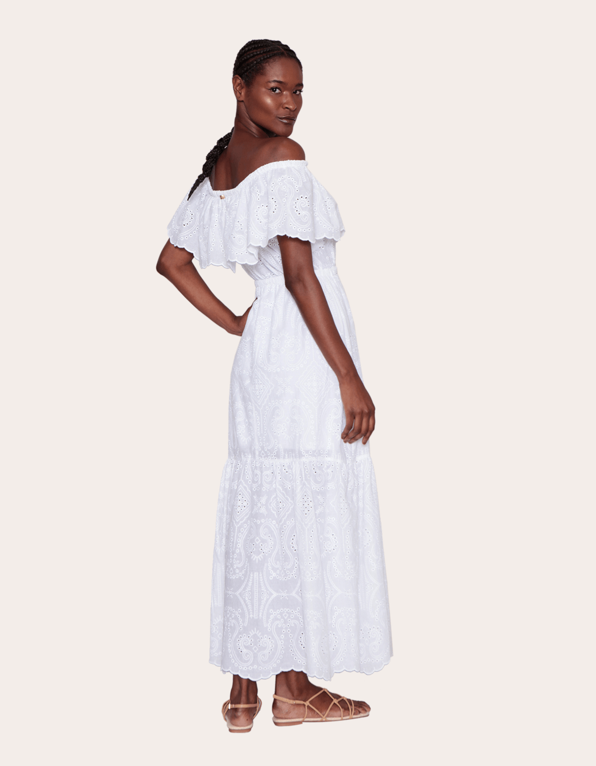 Vestido longo ciganinha, possui decote ombro a ombro com elástico e babado. este vestido une estilo romântico com uma praticidade excepcional, tornando-o adequado para o seu dia a dia e ocasiões especiais. o decote ciganinha adiciona um toque delicado e sensual, complementado pelo babado que confere um charme extra.