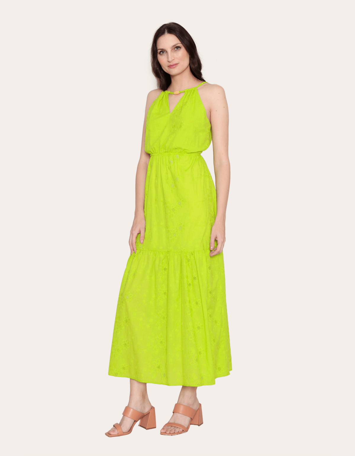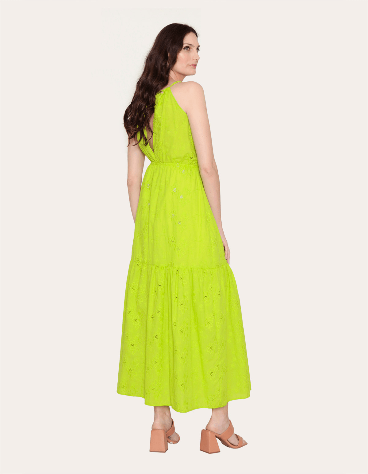 Vestido longo em laise, com alcinha, detalhe no decote e faixa no mesmo tecido. vestido fluído e delicado, perfeito para seu verão!!
