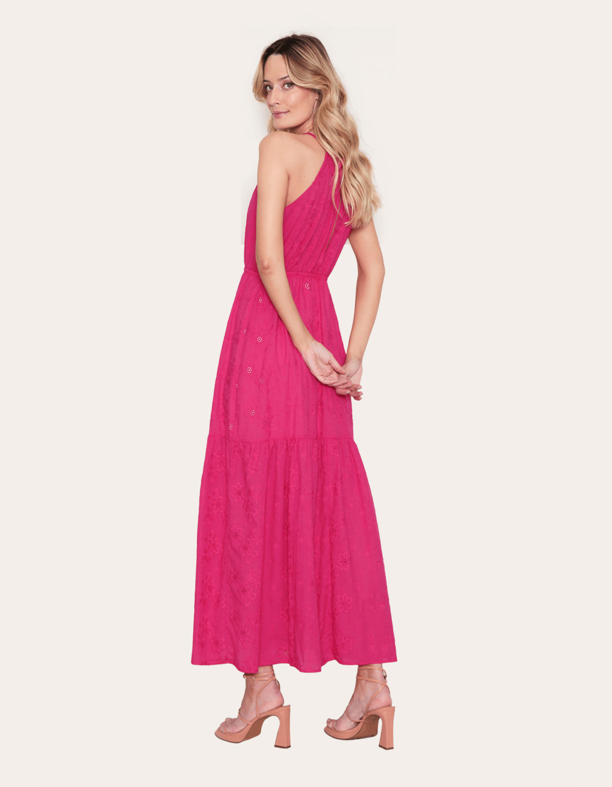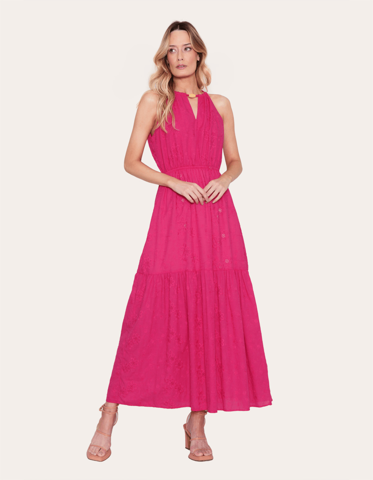 Vestido longo em laise, com alcinha, detalhe no decote e faixa no mesmo tecido. vestido fluído e delicado, perfeito para seu verão!!