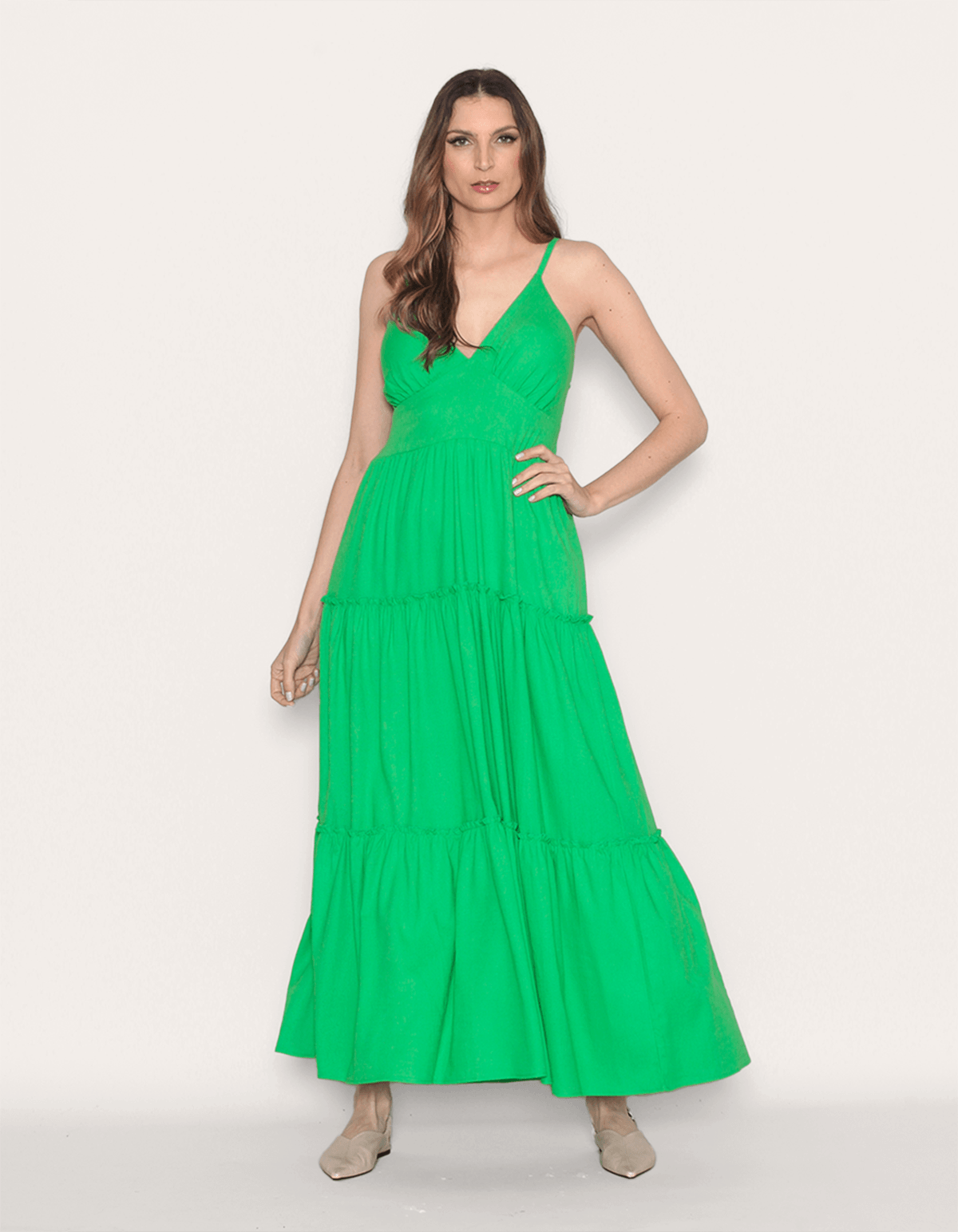 Vestido longo linho alcinha