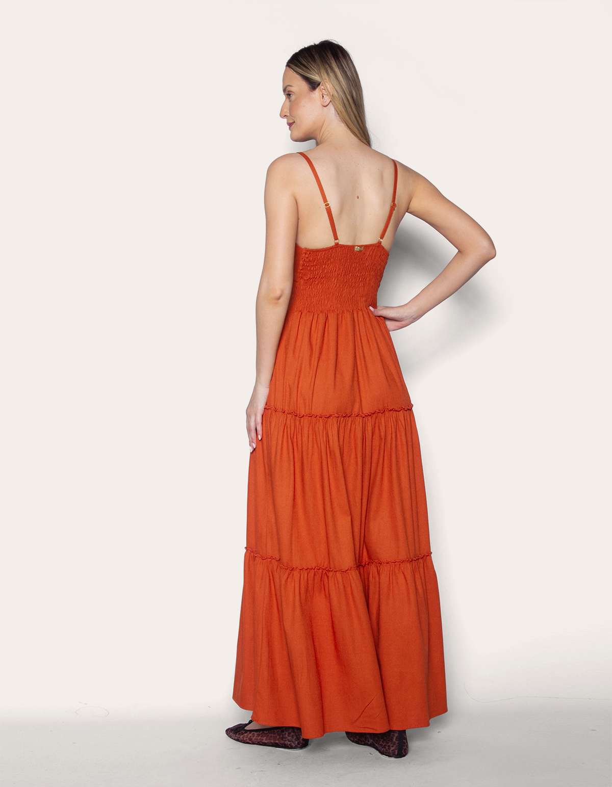 Vestido longo linho alcinha