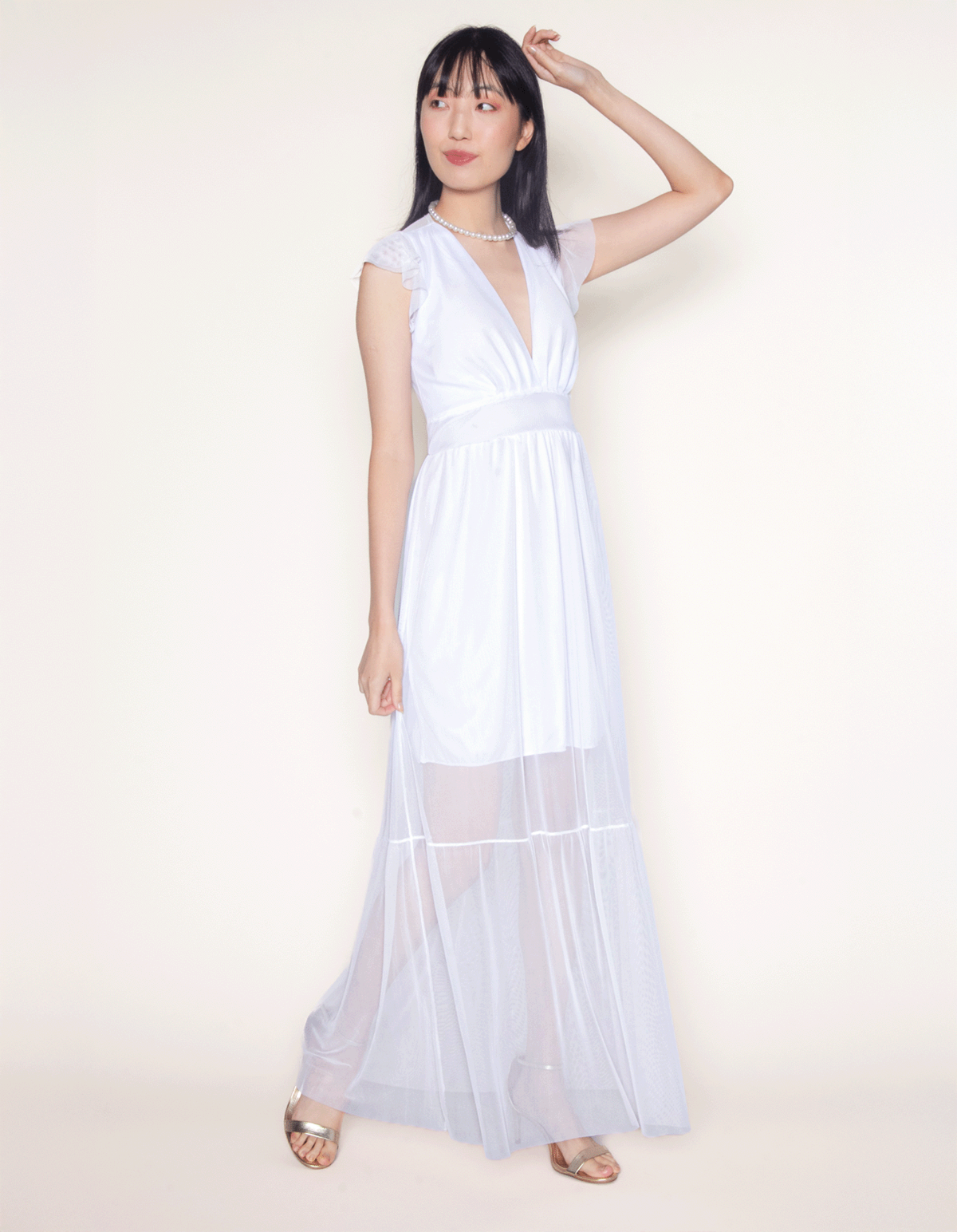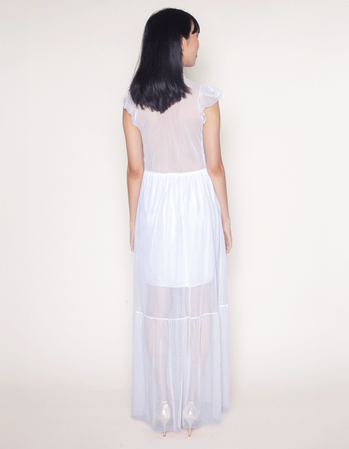 Vestido longo manga curta tule
