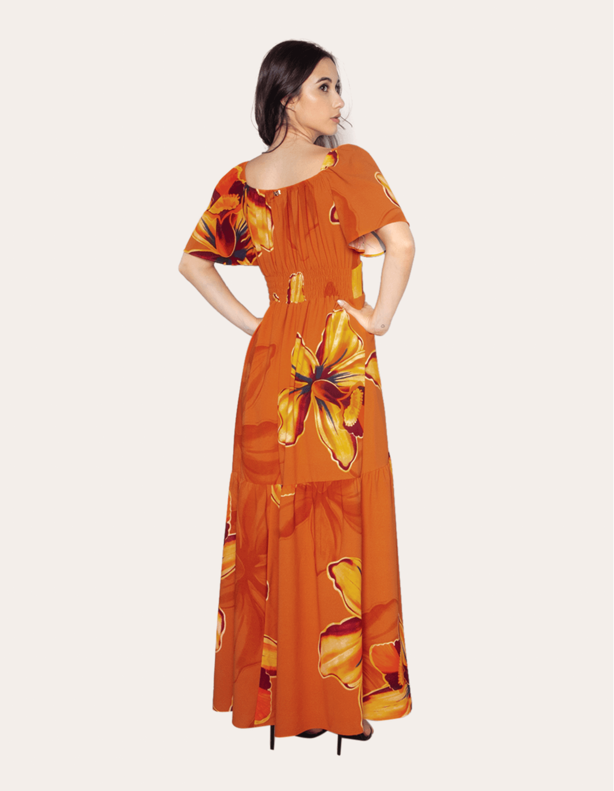 Vestido longo manga godê
