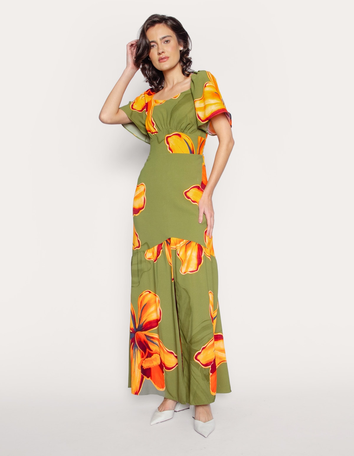 Vestido longo manga godê