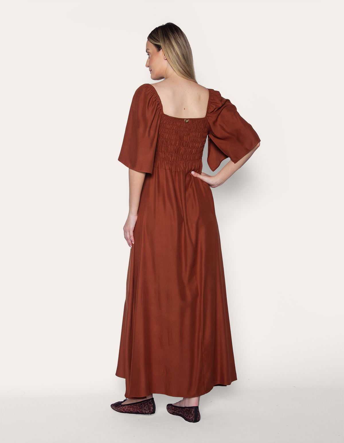 Vestido longo, manga curta godê, bojo, decote v, costas com lastex. versátil e atemporal, é perfeito para diversas ocasiões, desde eventos formais até encontros mais descontraídos. combine com sandálias de salto ou acessórios marcantes para um look completo e cheio de estilo. adicione este vestido ao seu guarda-roupa e eleve seu estilo com uma peça que é a definição de elegância e praticidade!