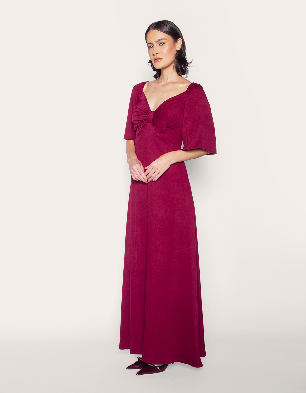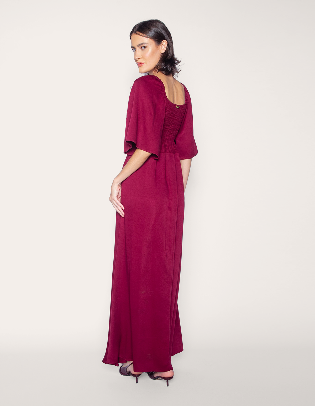 Vestido longo, manga curta godê, bojo, decote v, costas com lastex. versátil e atemporal, é perfeito para diversas ocasiões, desde eventos formais até encontros mais descontraídos. combine com sandálias de salto ou acessórios marcantes para um look completo e cheio de estilo. adicione este vestido ao seu guarda-roupa e eleve seu estilo com uma peça que é a definição de elegância e praticidade!