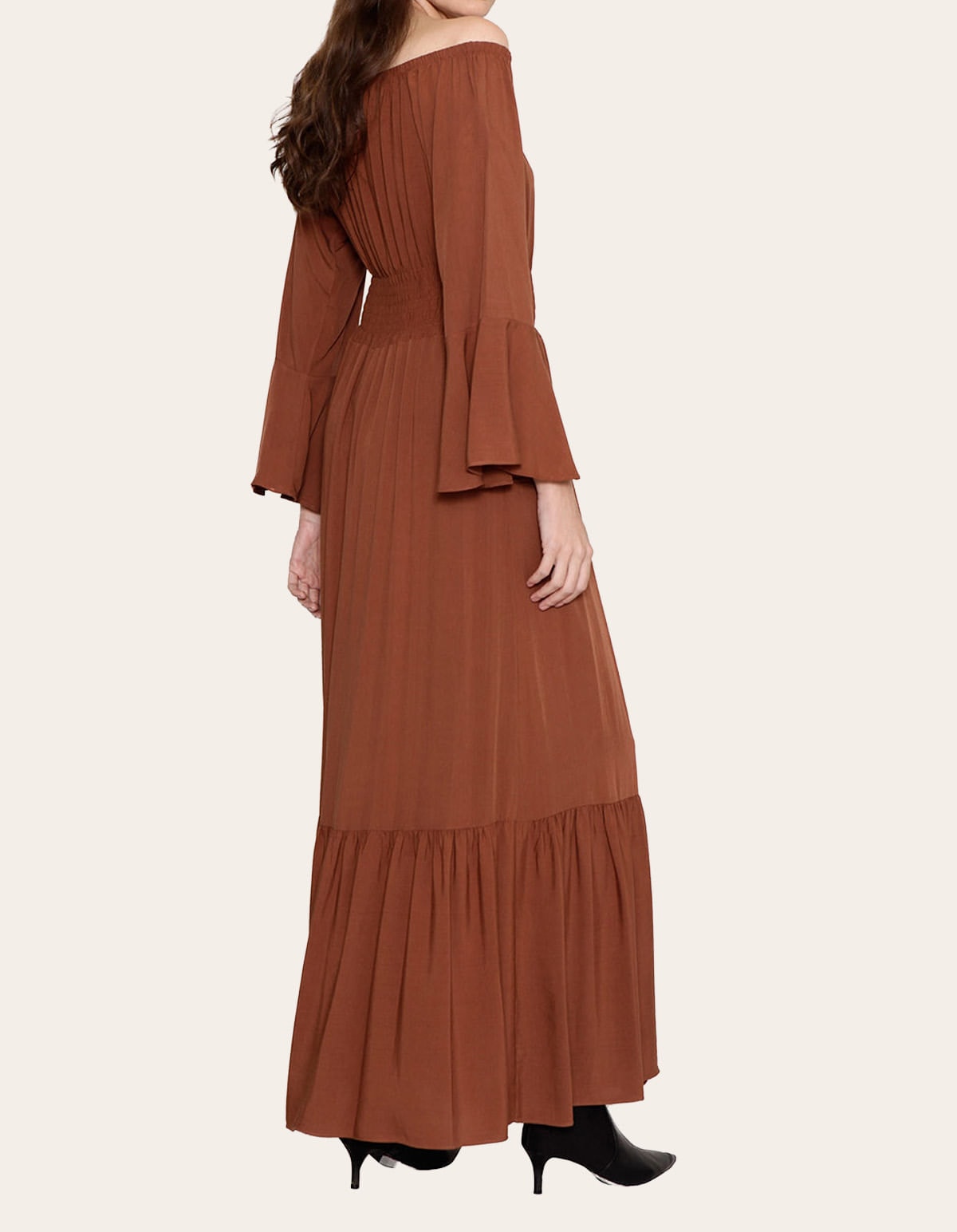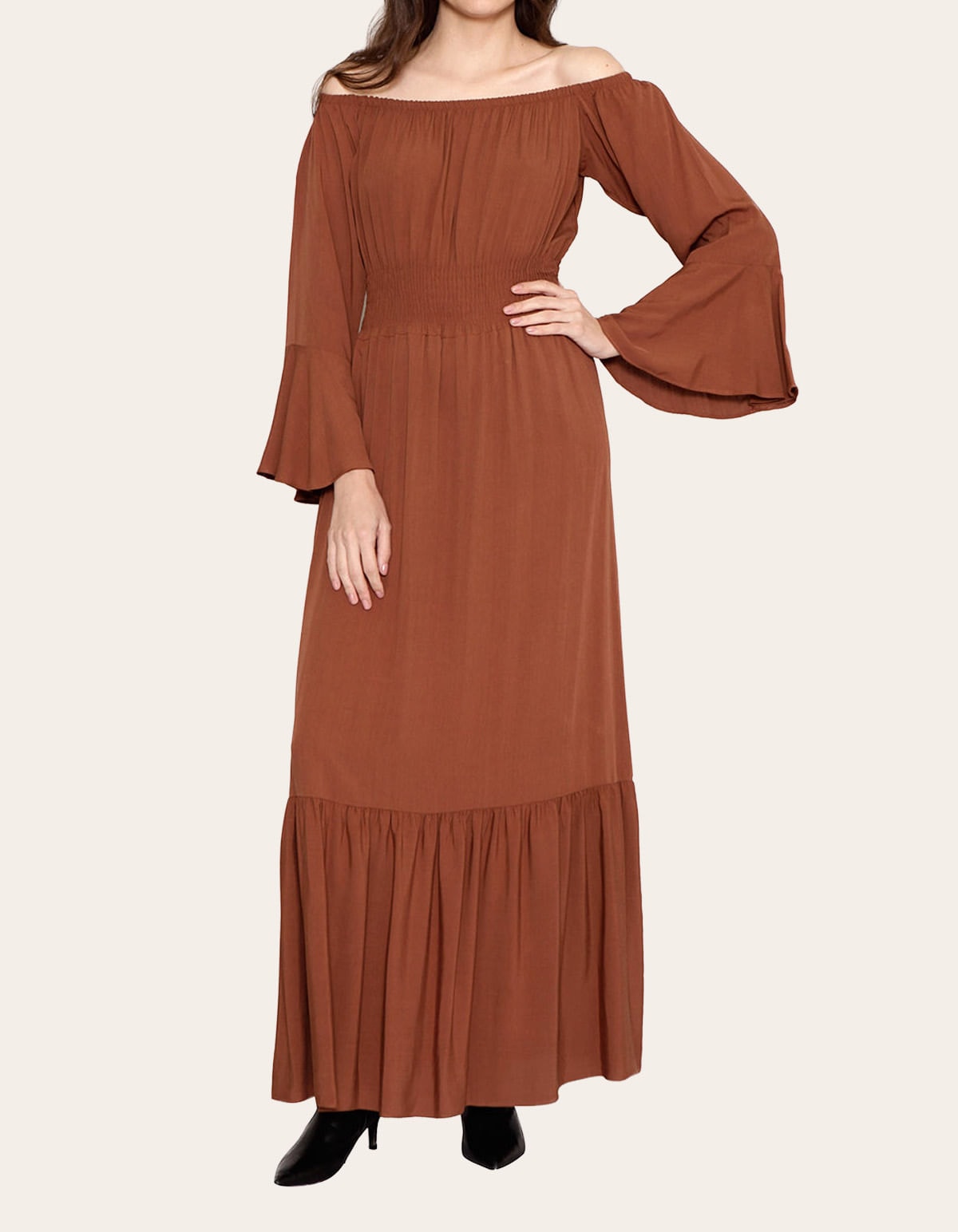 Vestido longo manga longa ciganinha Marrom escuro