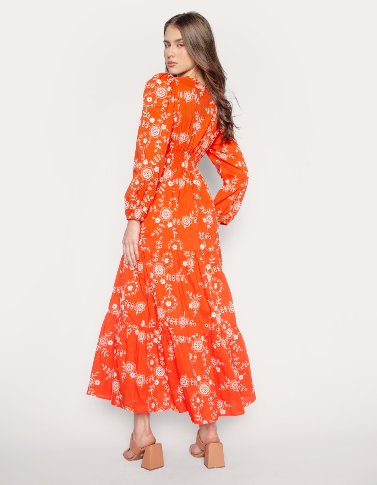 Vestido de laise bordada longo, manga longa com elástico no punho, decote v. experimente usar com botas e casaco, vai arrasar!!!