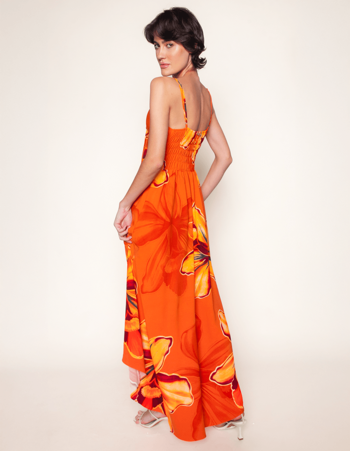 Vestido longo barra assimétrica na frente que proporciona caimento e leve fluído, alcinha com detalhe sutil vazado abaixo do decote, possui lastex nas costas. acompanha faixa para nó no decote. destaque para a faixa que acompanha para amarração no decote que dão o toque sofisticado e proporcionam ajuste perfeito ao corpo. uma peça que pode transitar entre vários estilos!