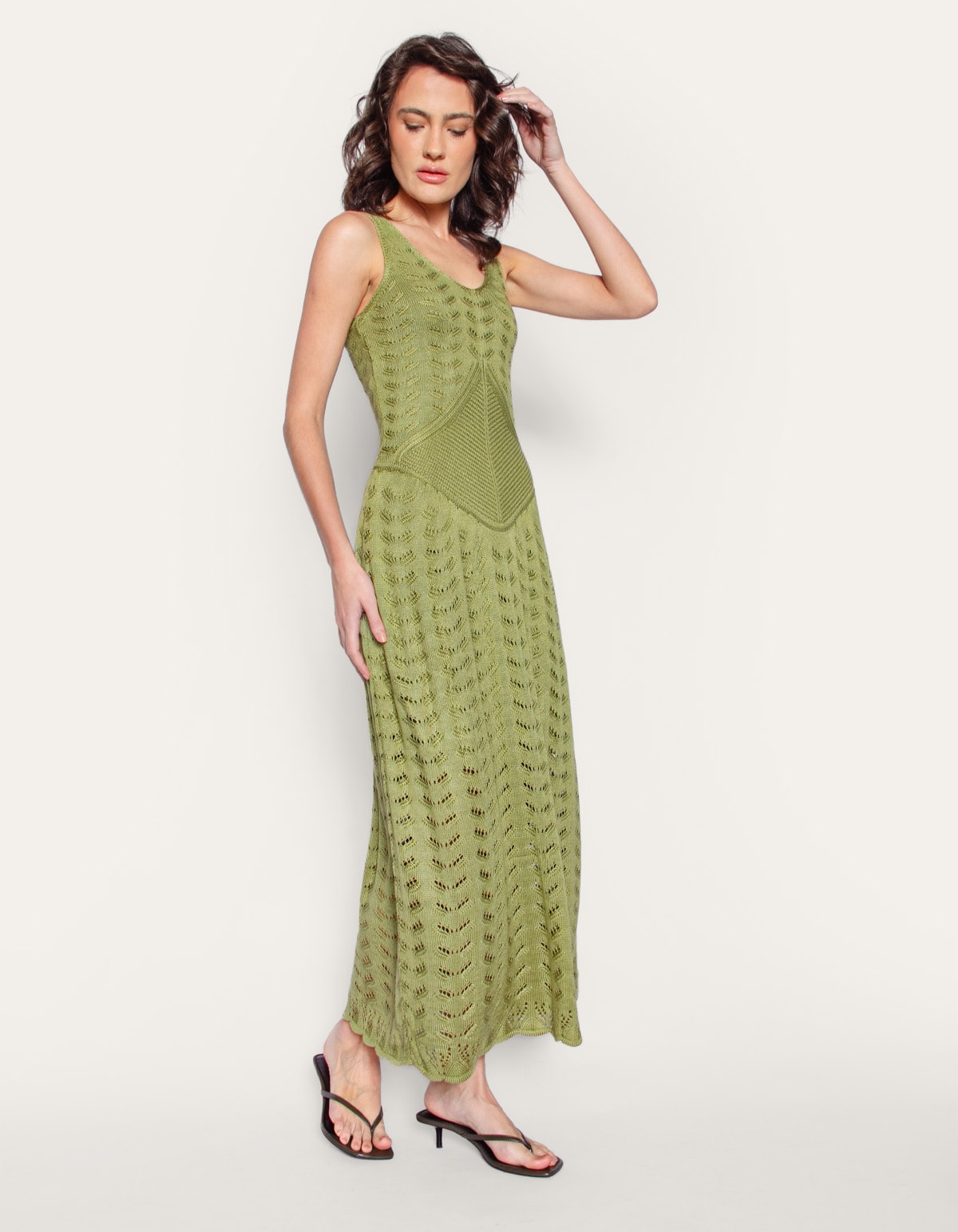Vestido Longo Riviera Cavado em Tricot Oliva