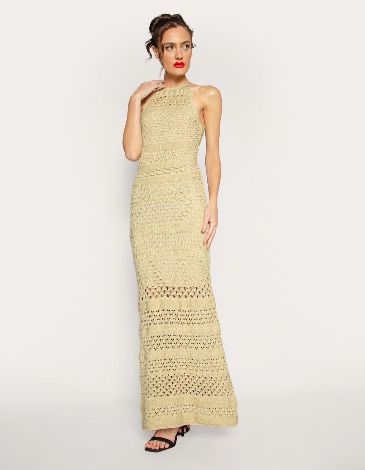 Confeccionado em tramas abertas e trabalhadas, naquele tricot levinho e super diferenciado! o vestido possui modelagem justinha, alcinhas finas que passam no pescoço, cruzando nas costas e ajustando com amarração, com um lindo recorte entre a costas e cintura, esculpe o corpo com um caimento impecável modelagem sereia. essa peça desenhará seu corpo como nenhuma outra, aposte nela!