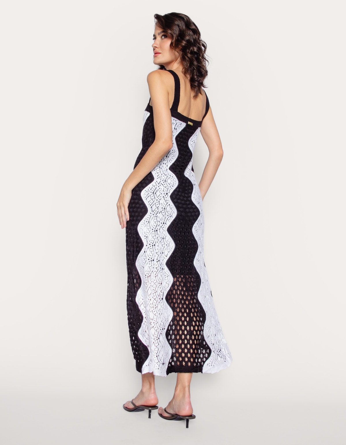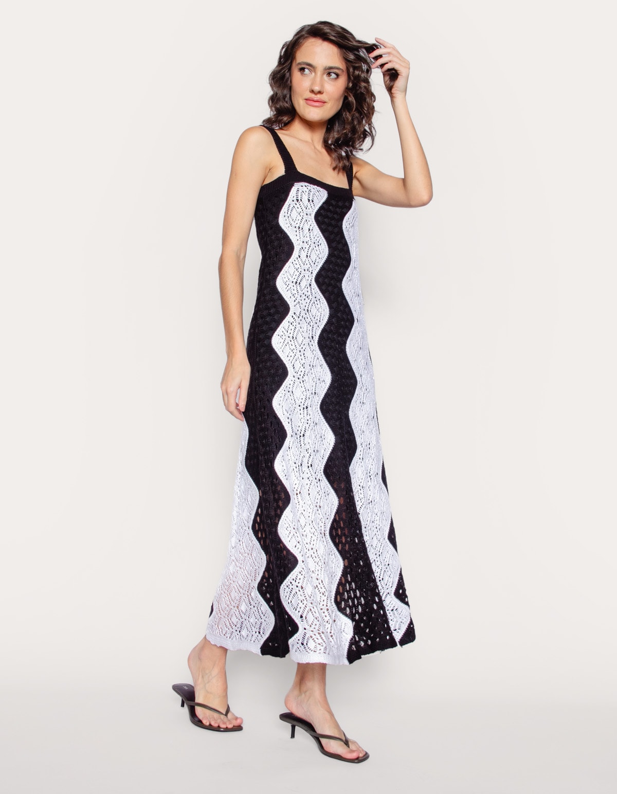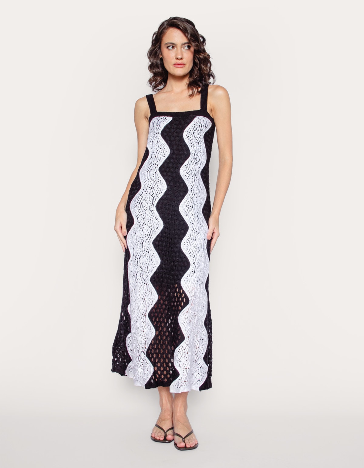 Vestido longo em tricot padronagem zig zag, alças médias. conforto e estilo com o nosso vestido longo crochê. perfeito para qualquer ocasião!