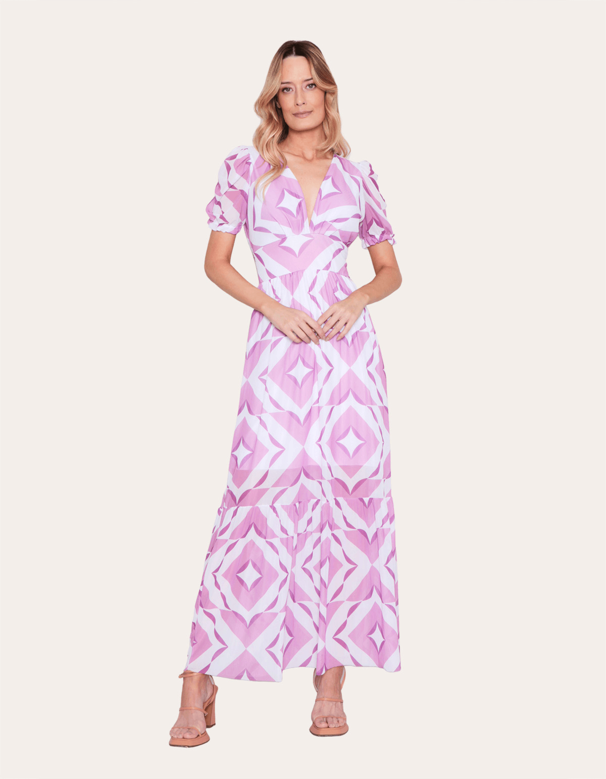 Vestido confeccionado em tule estampado. a peça possui decote v com bojo, mangas curtas com elástico, forro fixo, caimento reto, comprimento longo e acabamento simples. leve, a peça além de agregar estilo ao seu visual, proporciona muito conforto e liberdade durante os movimentos. cheio de estilo, o modelo é um look completo e perfeito para quem gosta de se vestir com muita personalidade e destaque.