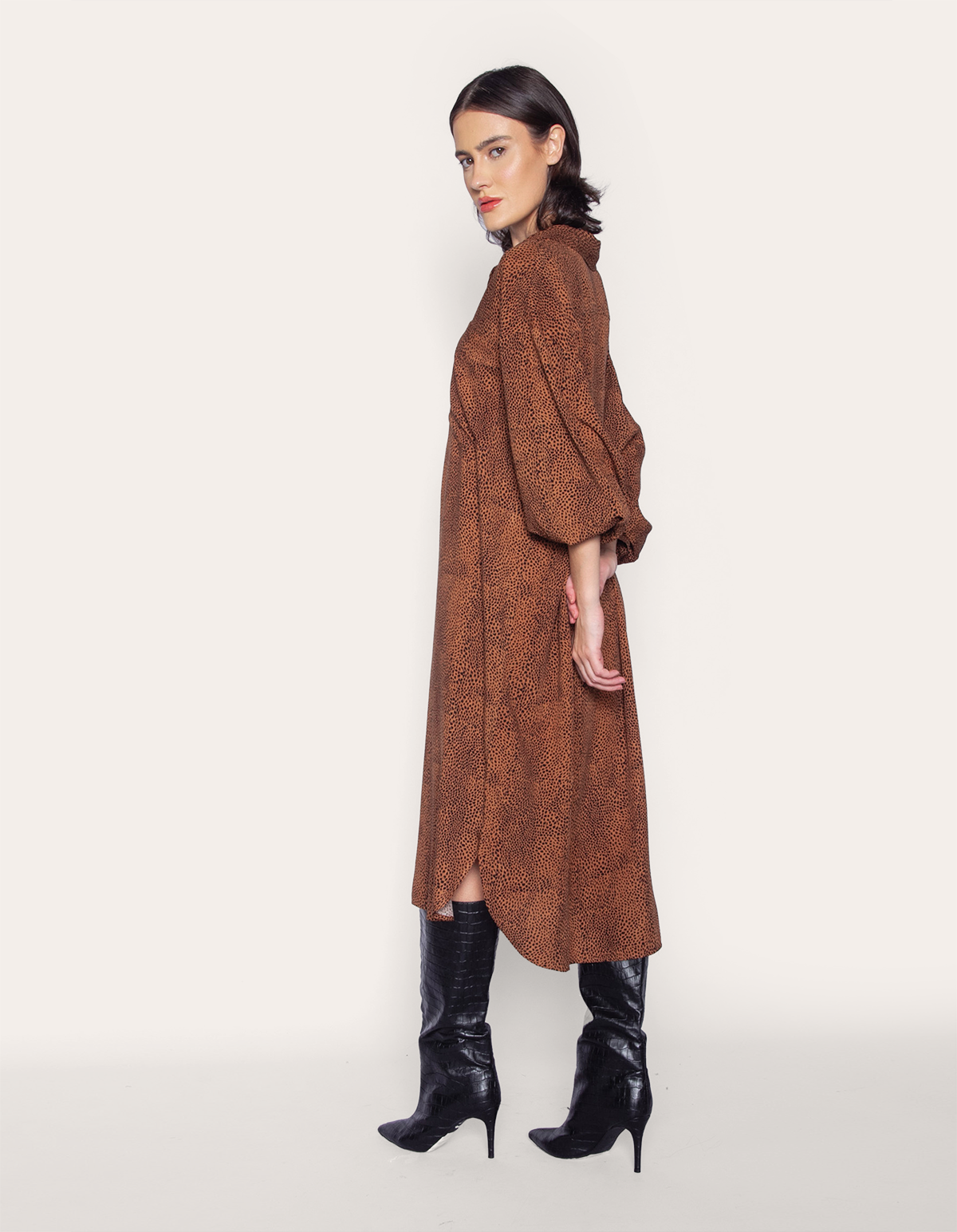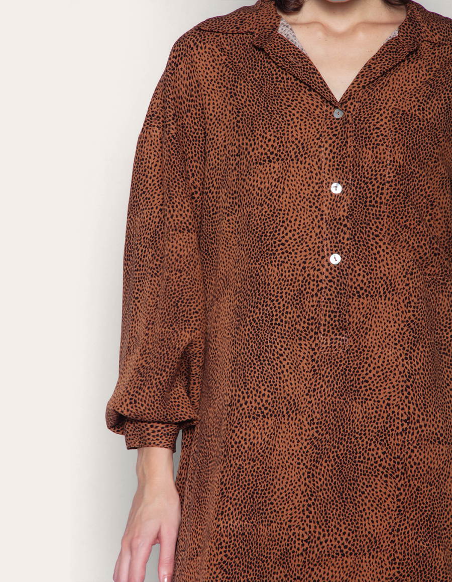 Vestido midi chemise, modelagem ampla, shape reto e manga 7/8. esta peça versátil combina a elegância de um vestido com a praticidade de uma camisa, tornando-se uma escolha perfeita para diversas ocasiões.