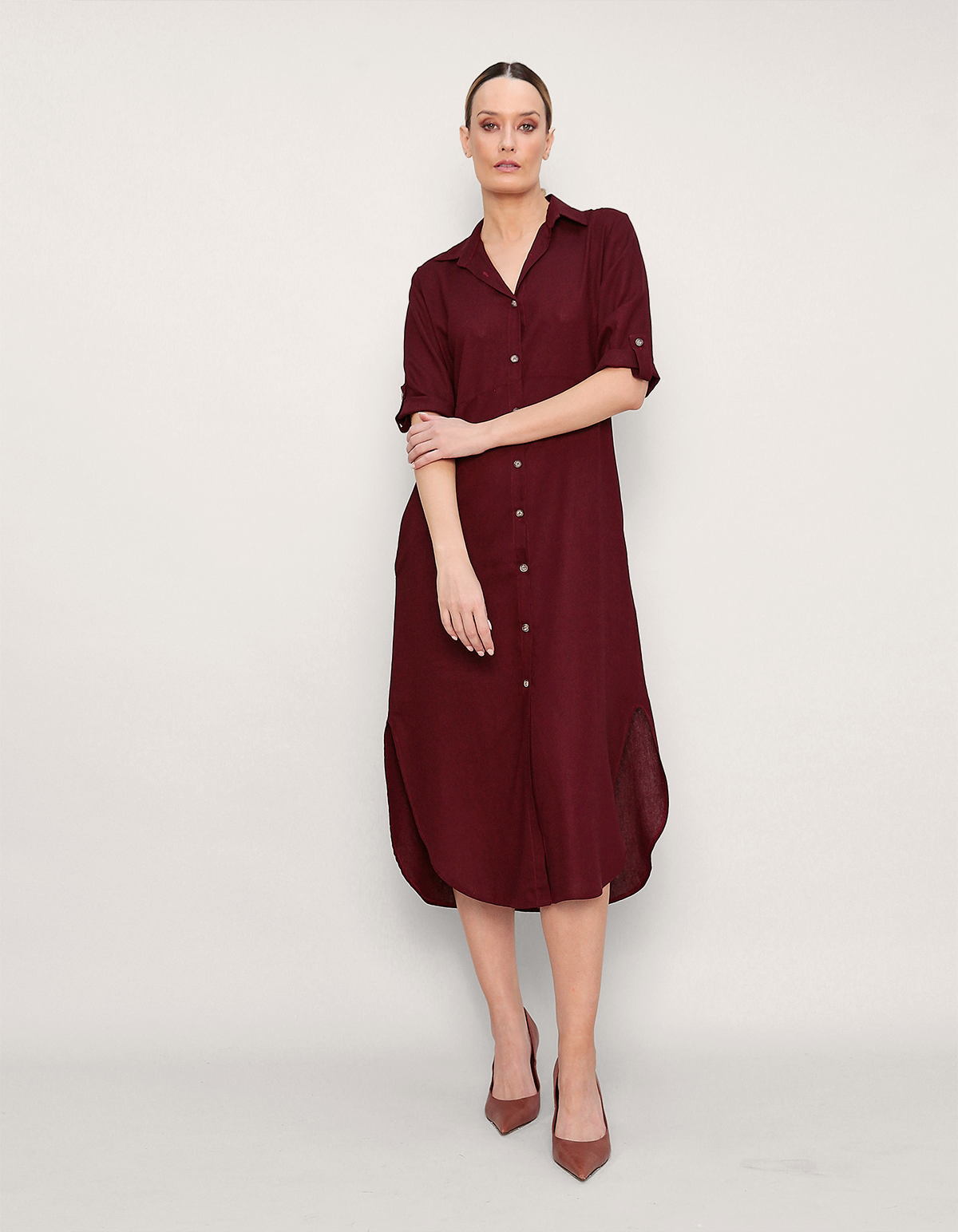 Vestido midi chemise, manga 3/4 e abotoamento frontal. É uma peça curinga em vários sentidos: além de destacar o corpo, pode ser usado desde um dia frio até os mais quentes. Sabendo combinar, é tiro e queda para ficar estilosa. O vestido chemise com shape camisa, tem ganhado cada vez mais espaço no guarda-roupa, seu caimento soltinho com mangas ajustadas traduz elegância e feminilidade às produções. Um cinto largo é o acessório ideal para marcar a cintura..