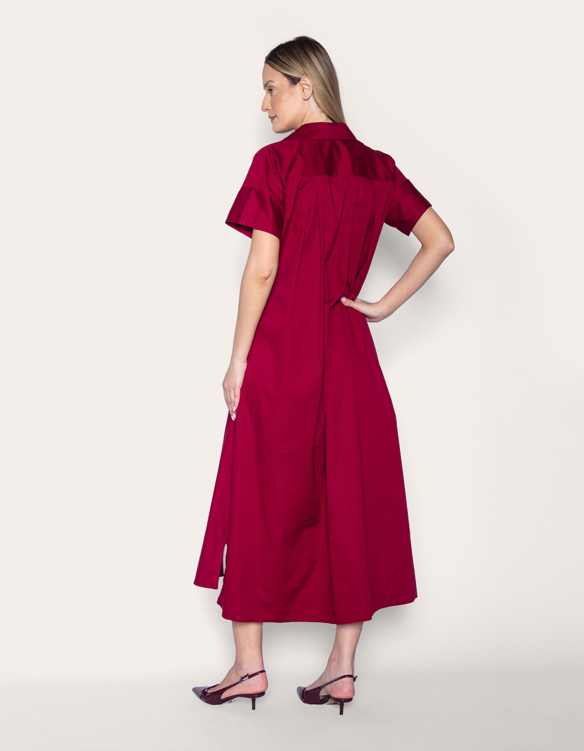 Vestido midi chemise amplo vinho