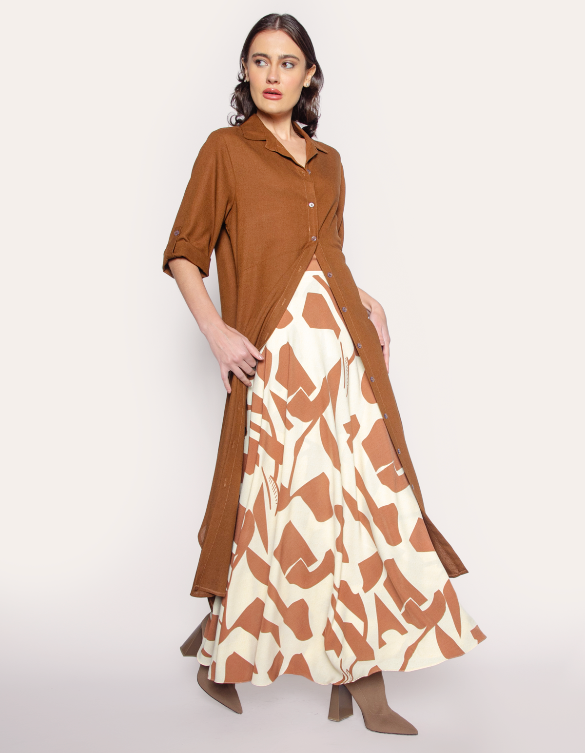 Vestido midi chemise, manga 3/4 e abotoamento frontal. É uma peça curinga em vários sentidos: além de destacar o corpo, pode ser usado desde um dia frio até os mais quentes. Sabendo combinar, é tiro e queda para ficar estilosa. O vestido chemise com shape camisa, tem ganhado cada vez mais espaço no guarda-roupa, seu caimento soltinho com mangas ajustadas traduz elegância e feminilidade às produções. Um cinto largo é o acessório ideal para marcar a cintura..