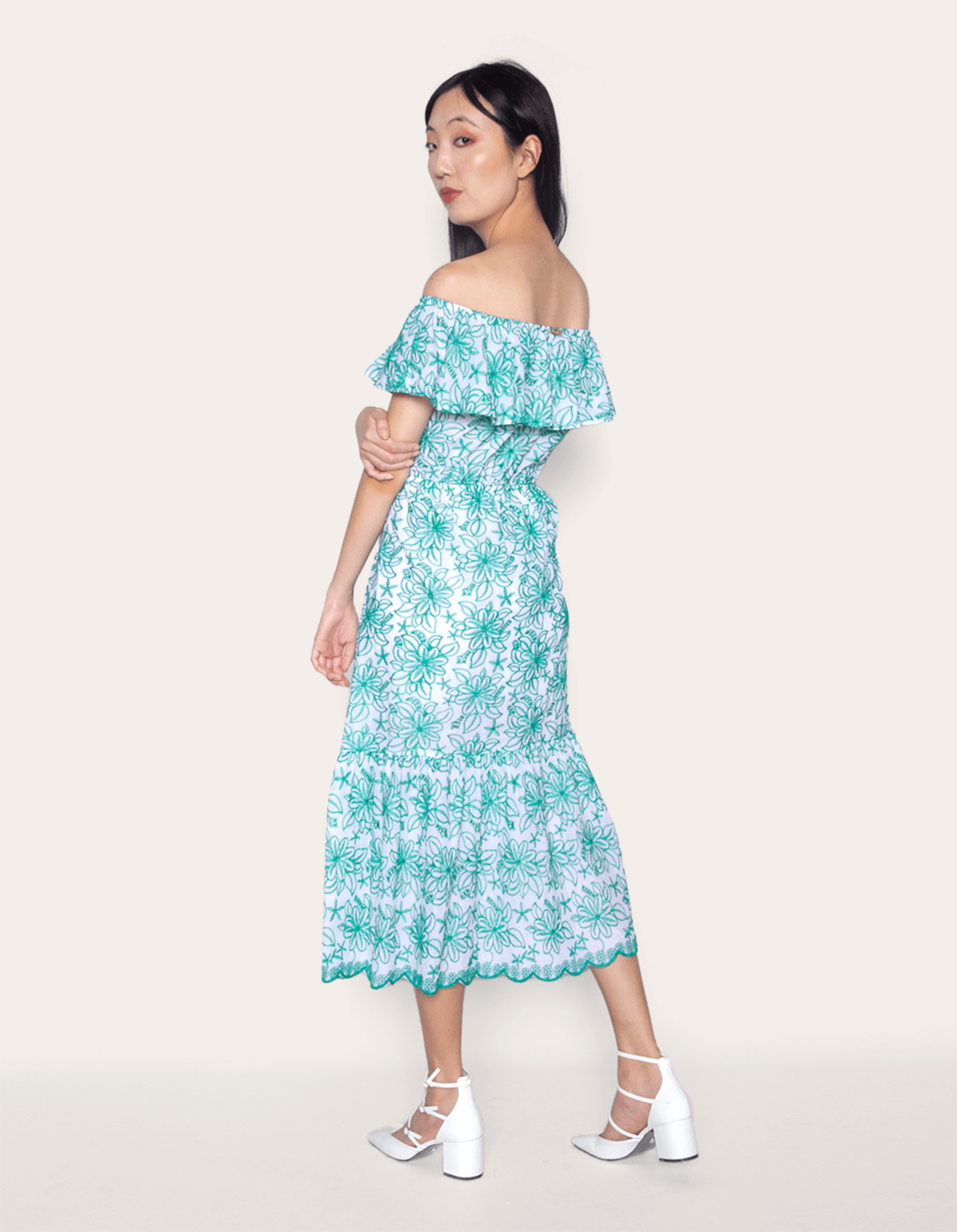 Vestido midi ciganinha, em laise bordada colorida. ideal para arrasar nos dias quentes de verão.