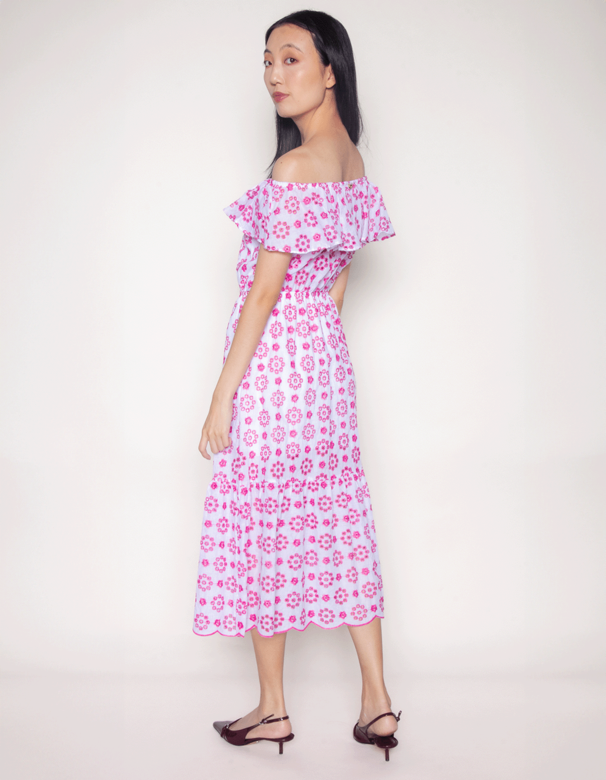 Vestido midi ciganinha, em laise bordada colorida. ideal para arrasar nos dias quentes de verão.