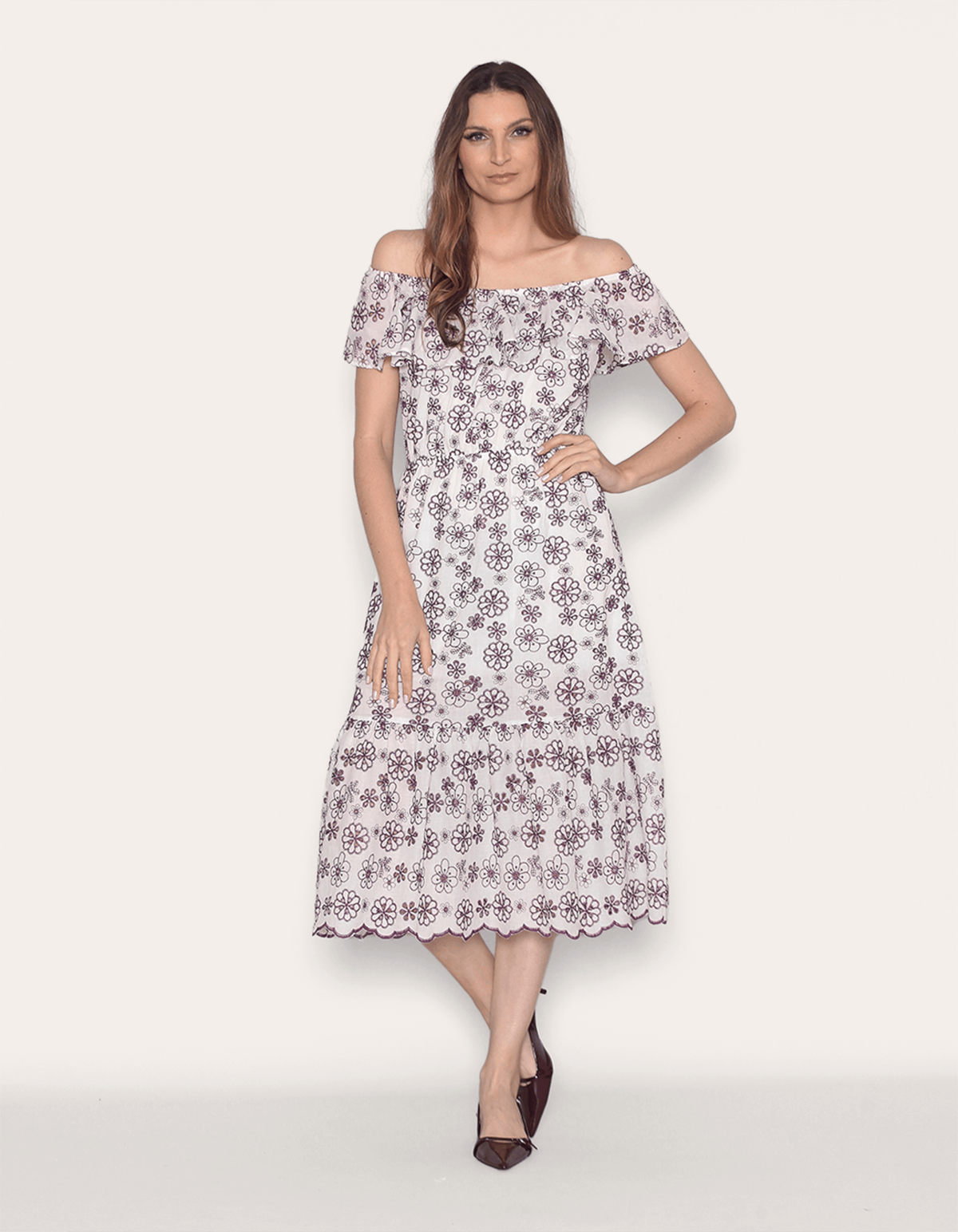 Vestido midi ciganinha, em laise bordada colorida. ideal para arrasar nos dias quentes de verão.