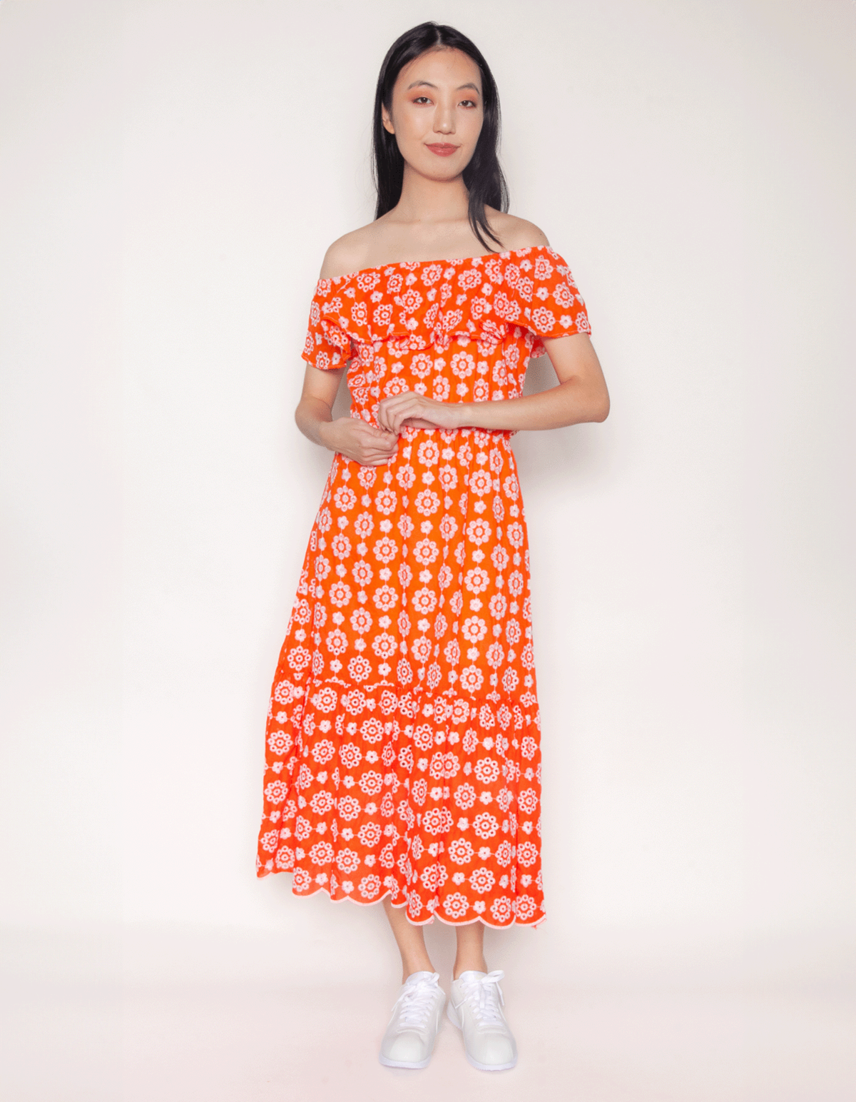 Vestido midi ciganinha, em laise bordada colorida. ideal para arrasar nos dias quentes de verão.