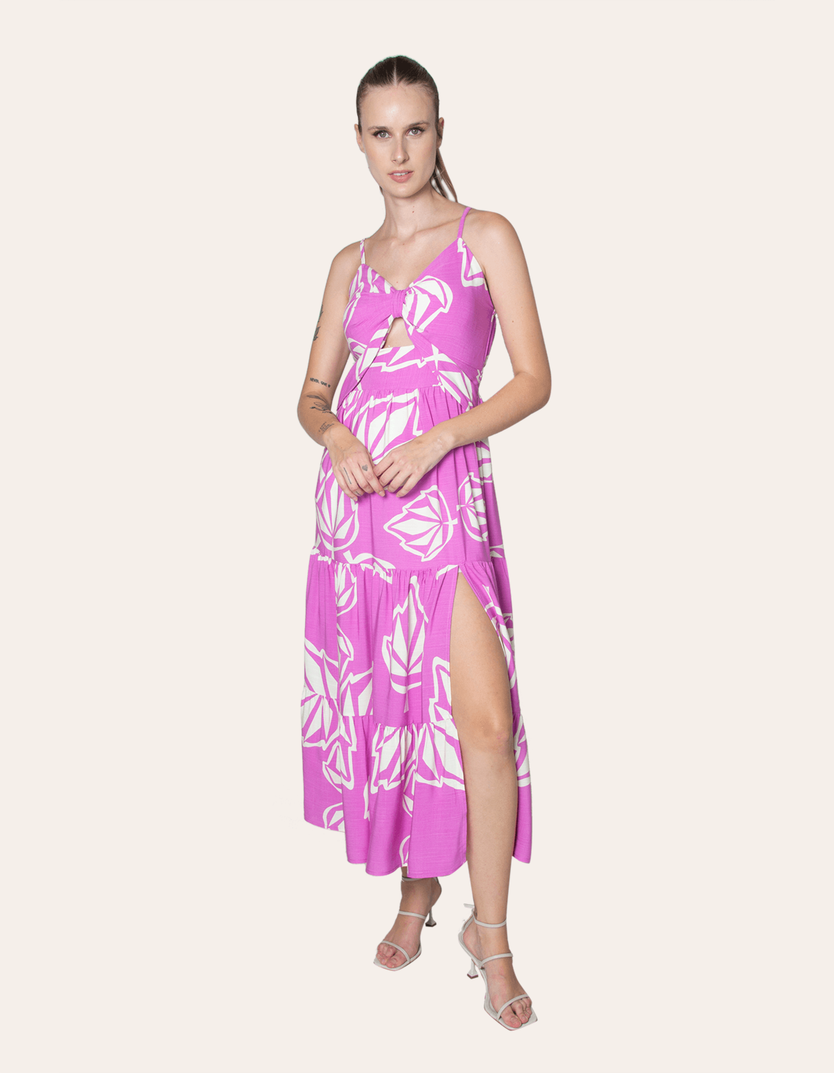 Vestido midi decote vazado estampado