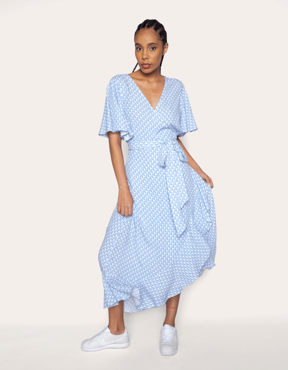 Vestido midi transpassado envelope estampado, possui faixa e manga curta godê e saia com babado. combine com rasteiras, flatforms ou mesmo um tênis. crie looks modernos e cheios de estilo para o dia a dia.