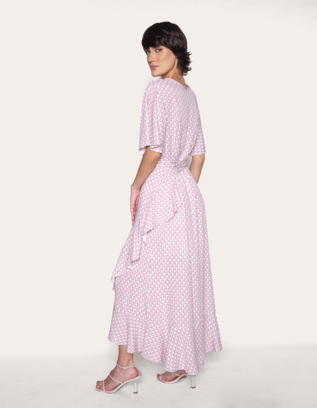 Vestido midi transpassado envelope estampado, possui faixa e manga curta godê e saia com babado. combine com rasteiras, flatforms ou mesmo um tênis. crie looks modernos e cheios de estilo para o dia a dia.