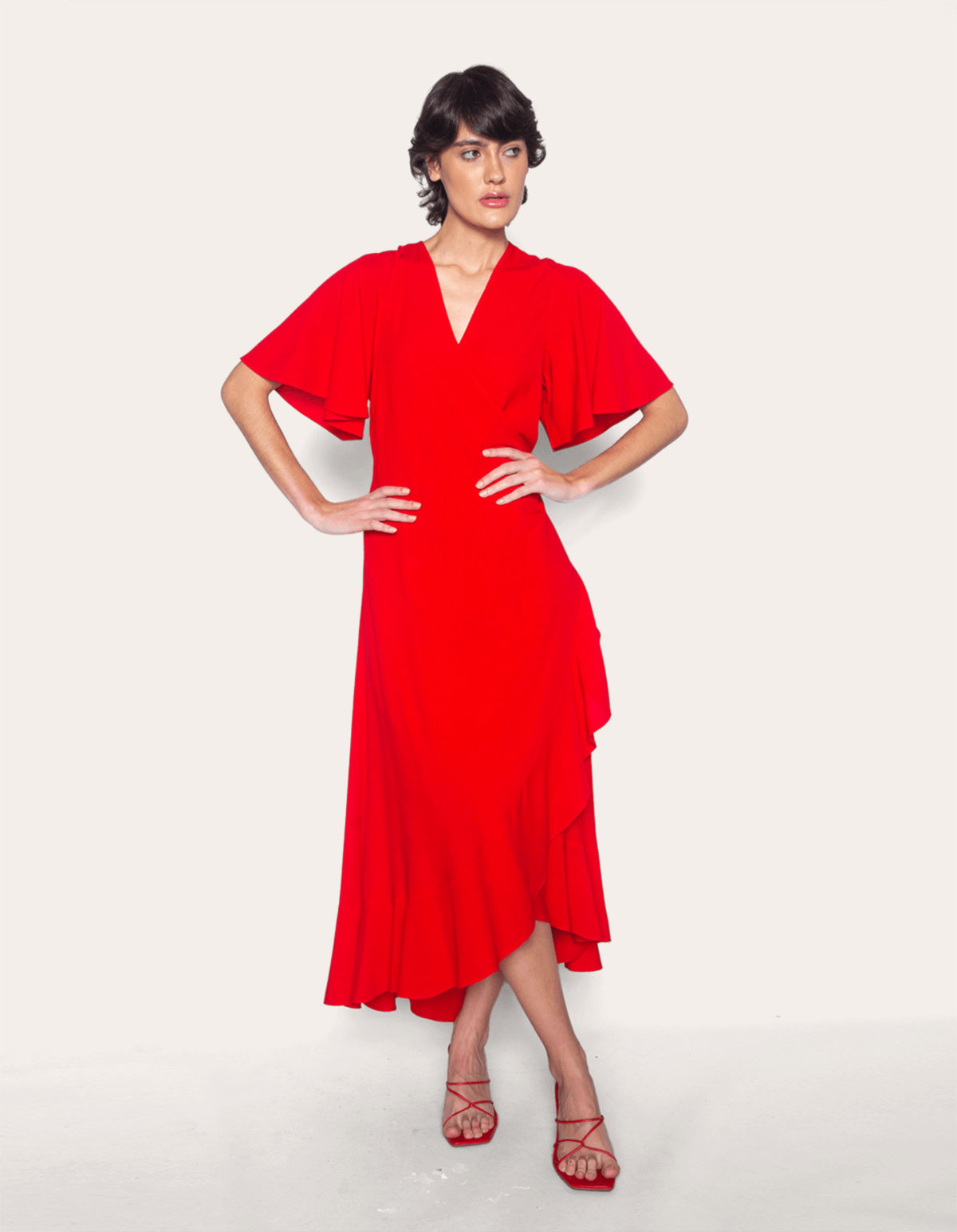 Vestido midi transpassado envelope, possui faixa e manga curta godê. combine com rasteiras, sandálias de salto ou mesmo um tênis. crie looks modernos e cheios de estilo para o dia a dia.