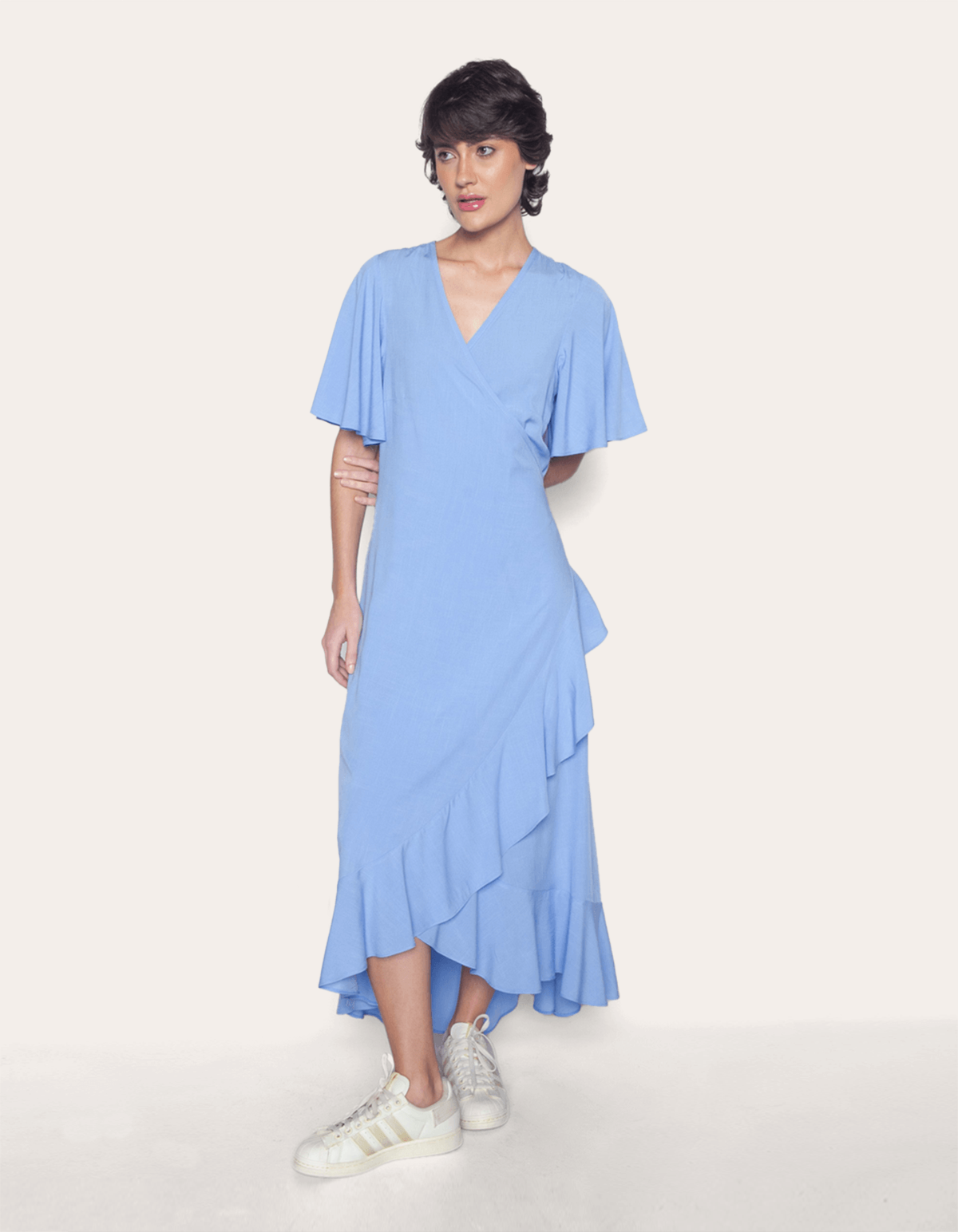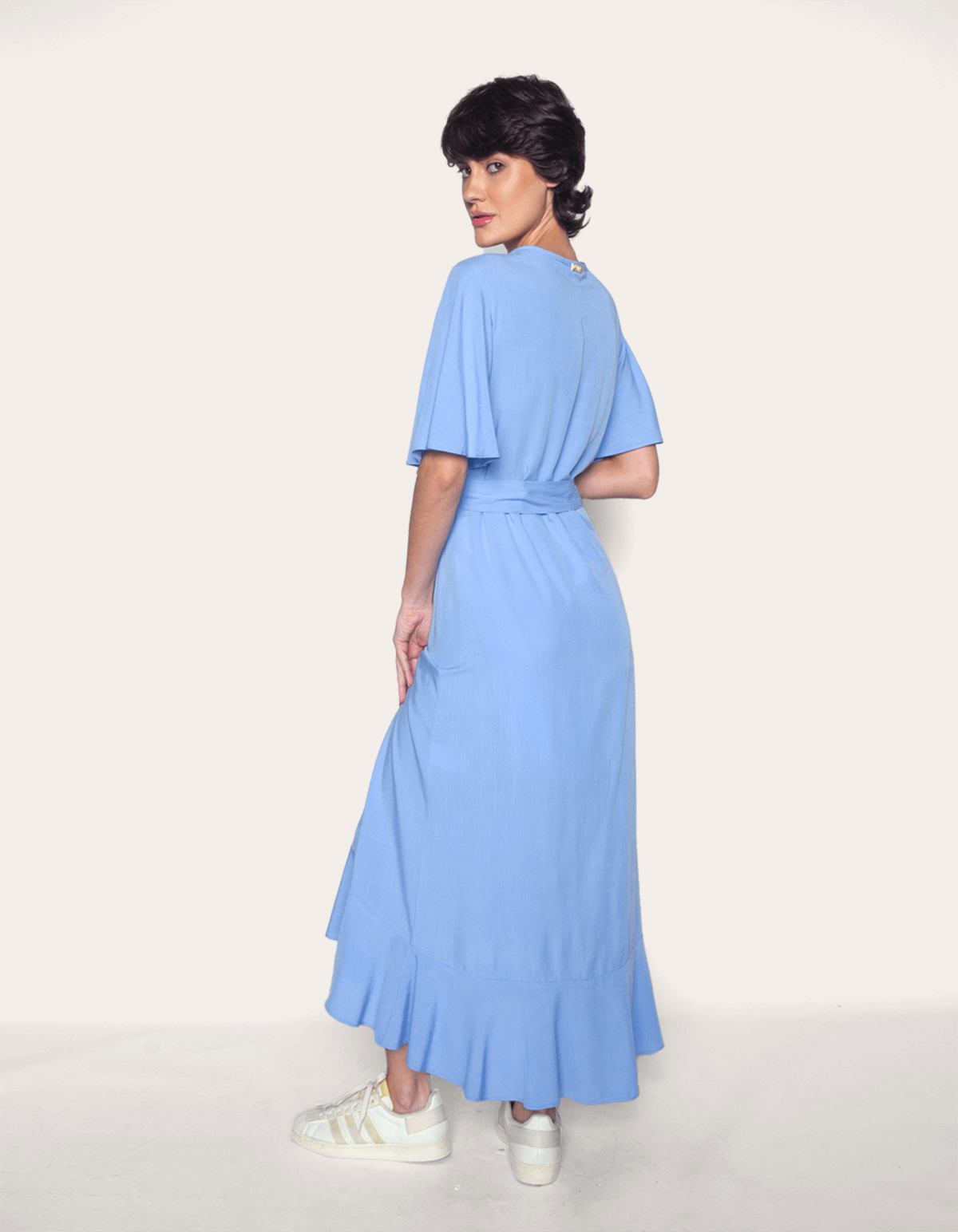 Vestido midi transpassado envelope, possui faixa e manga curta godê. combine com rasteiras, sandálias de salto ou mesmo um tênis. crie looks modernos e cheios de estilo para o dia a dia.