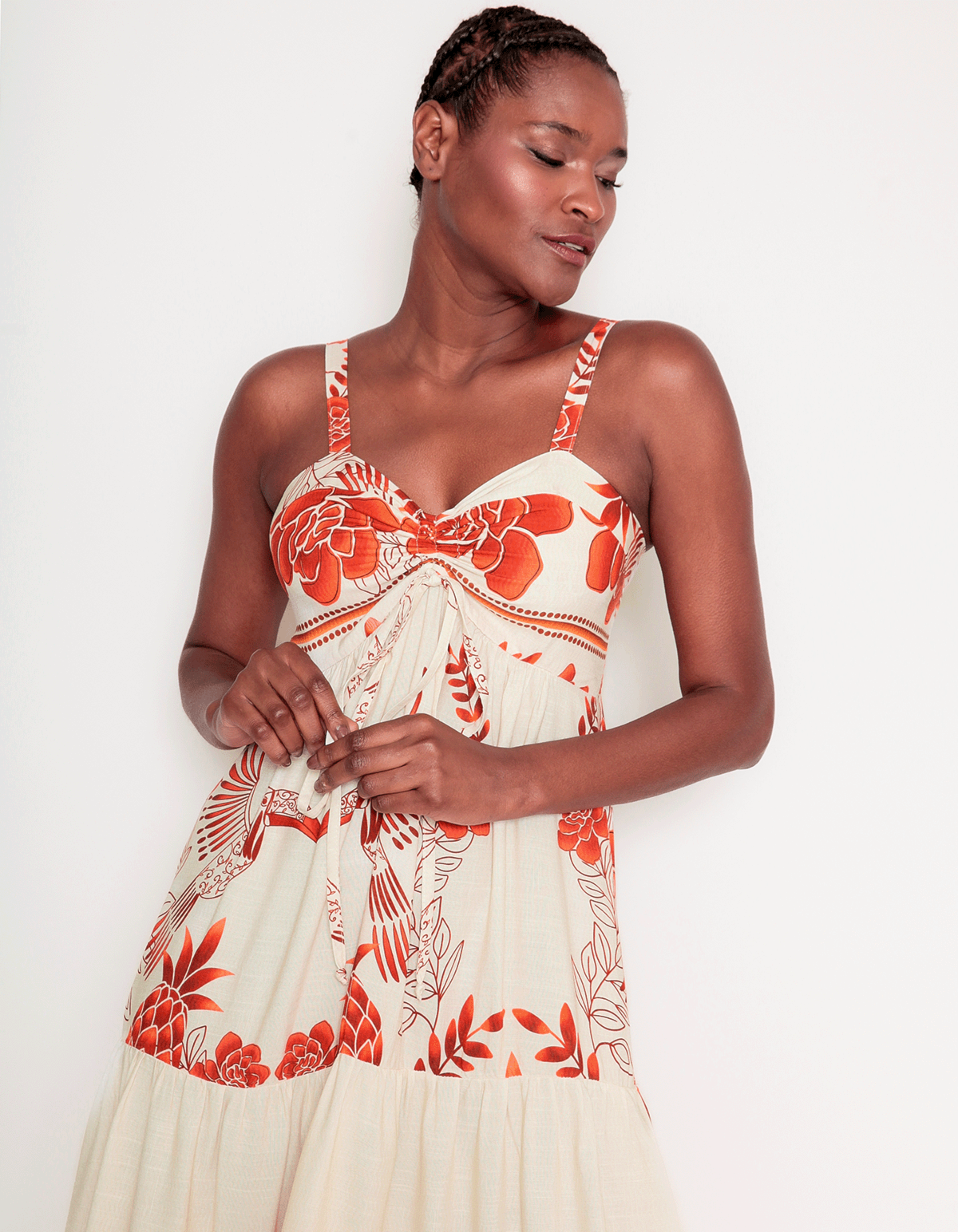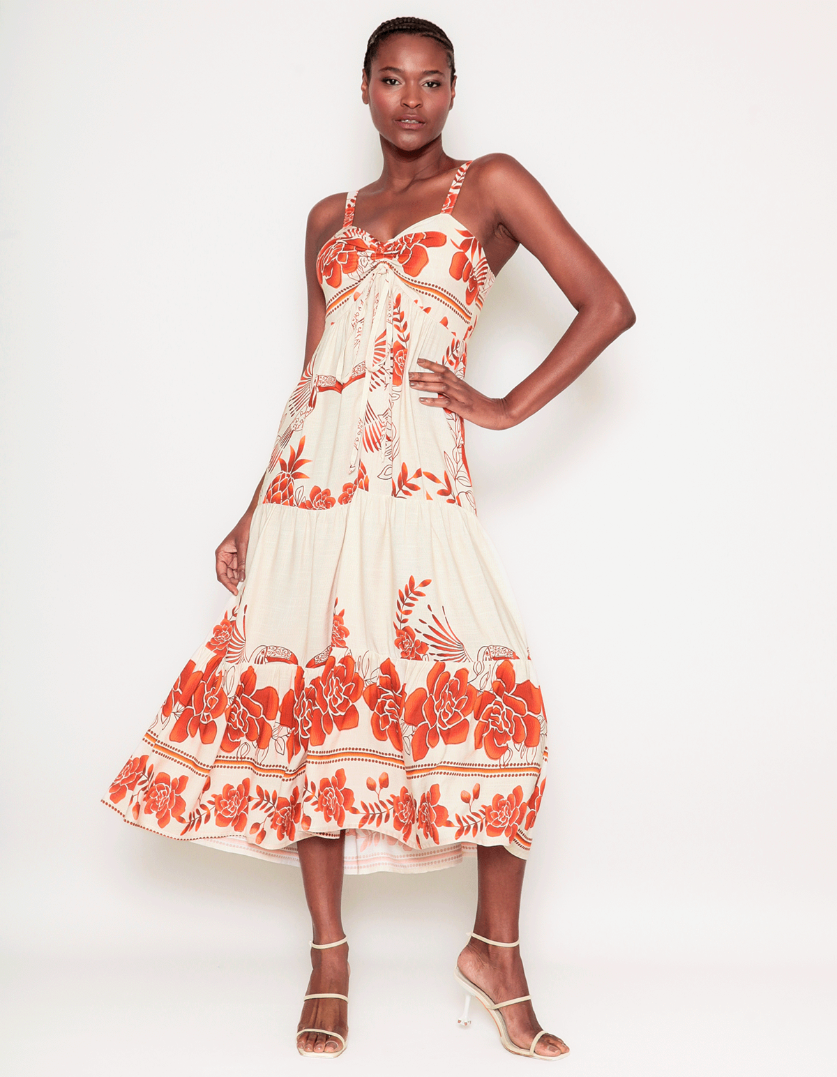 Vestido midi, alcinha, decote com detalhe franzido. é a escolha ideal para um look confortável e sofisticado, invista em acessórios para compor o look!