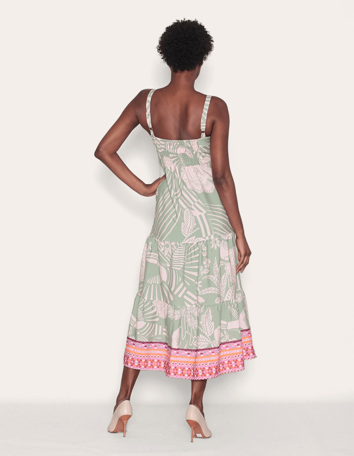 Vestido midi franzido decote Floral mint