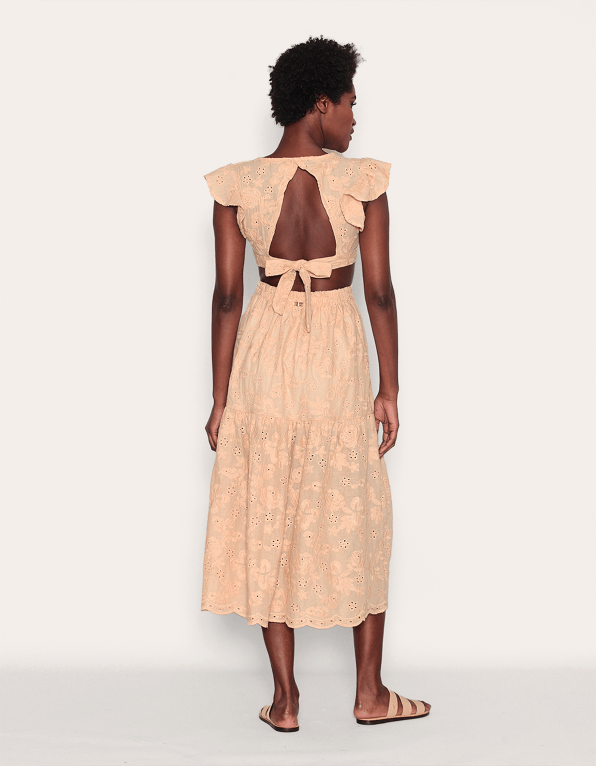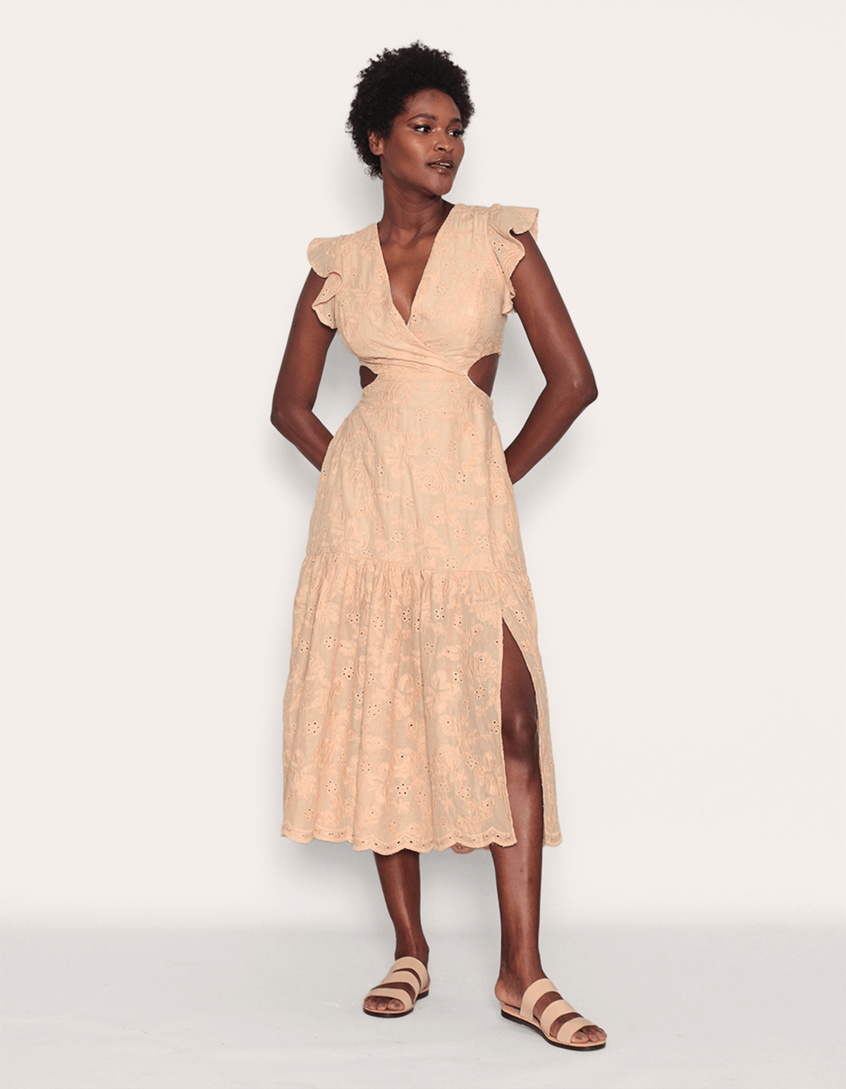 Vestido midi laise, decote transpassado, cava com babado, recortes na lateral e amarra atrás, possui elástico atrás na cintura e forro. uma peça perfeita para qualquer ocasião! feminino e poderoso, esse vestido valoriza e desenha o corpo. aposte nele que nessa estação!