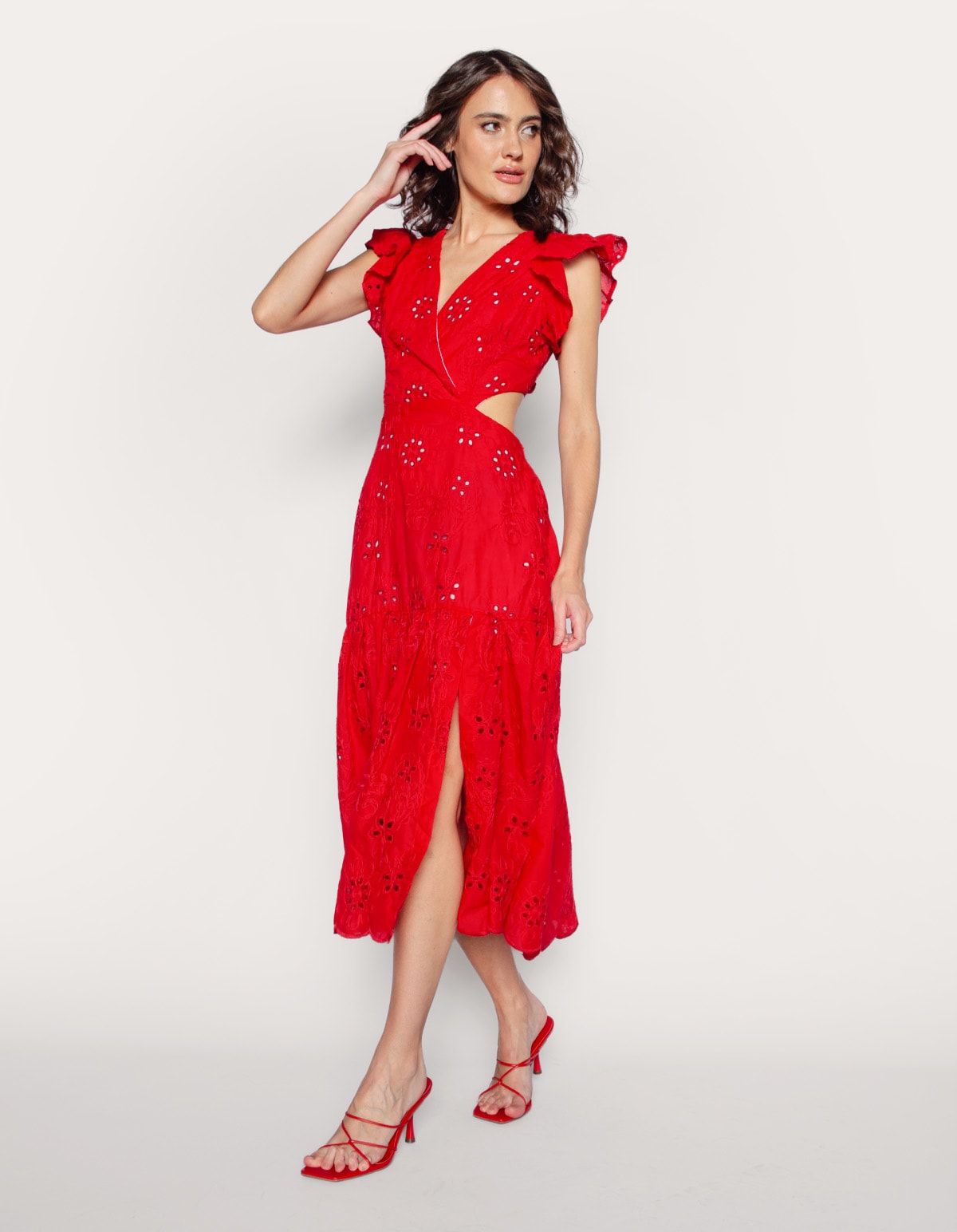 Vestido midi laise, decote transpassado, cava com babado, recortes na lateral e amarra atrás, possui elástico atrás na cintura e forro. uma peça perfeita para qualquer ocasião! feminino e poderoso, esse vestido valoriza e desenha o corpo. aposte nele que nessa estação!