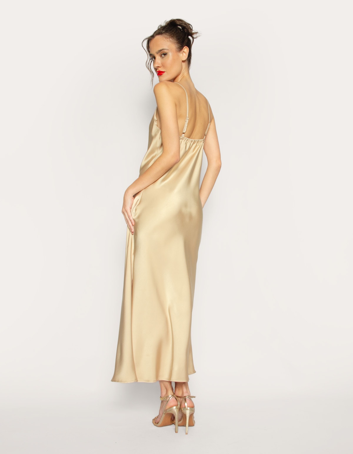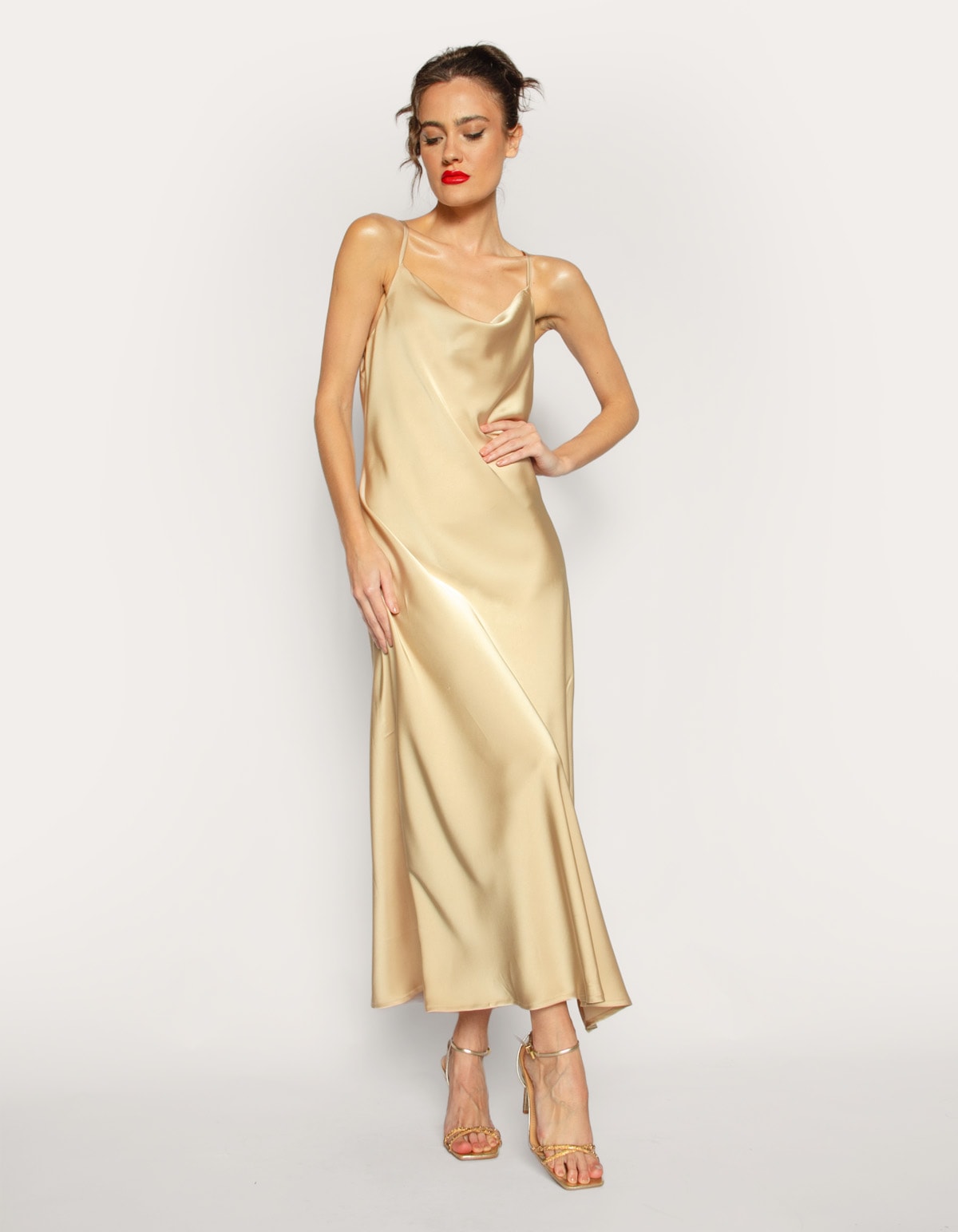 Vestido Midi Satiné Dourado
