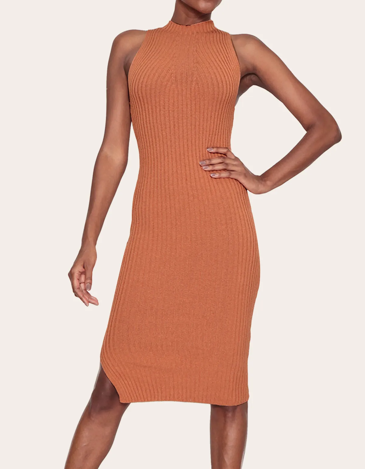 Vestido midi tricot canelado