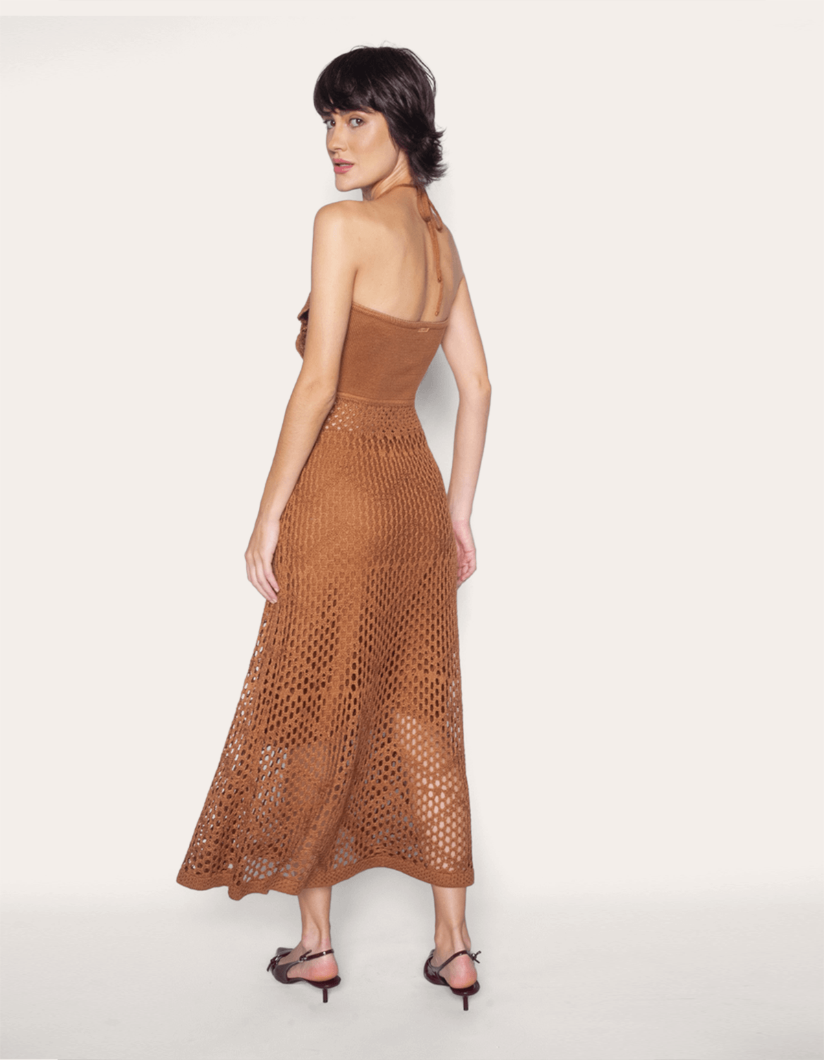 Vestido midi tricot flor Bege medio