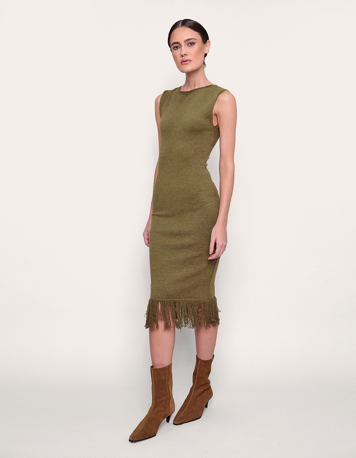 Vestido midi tricot franja