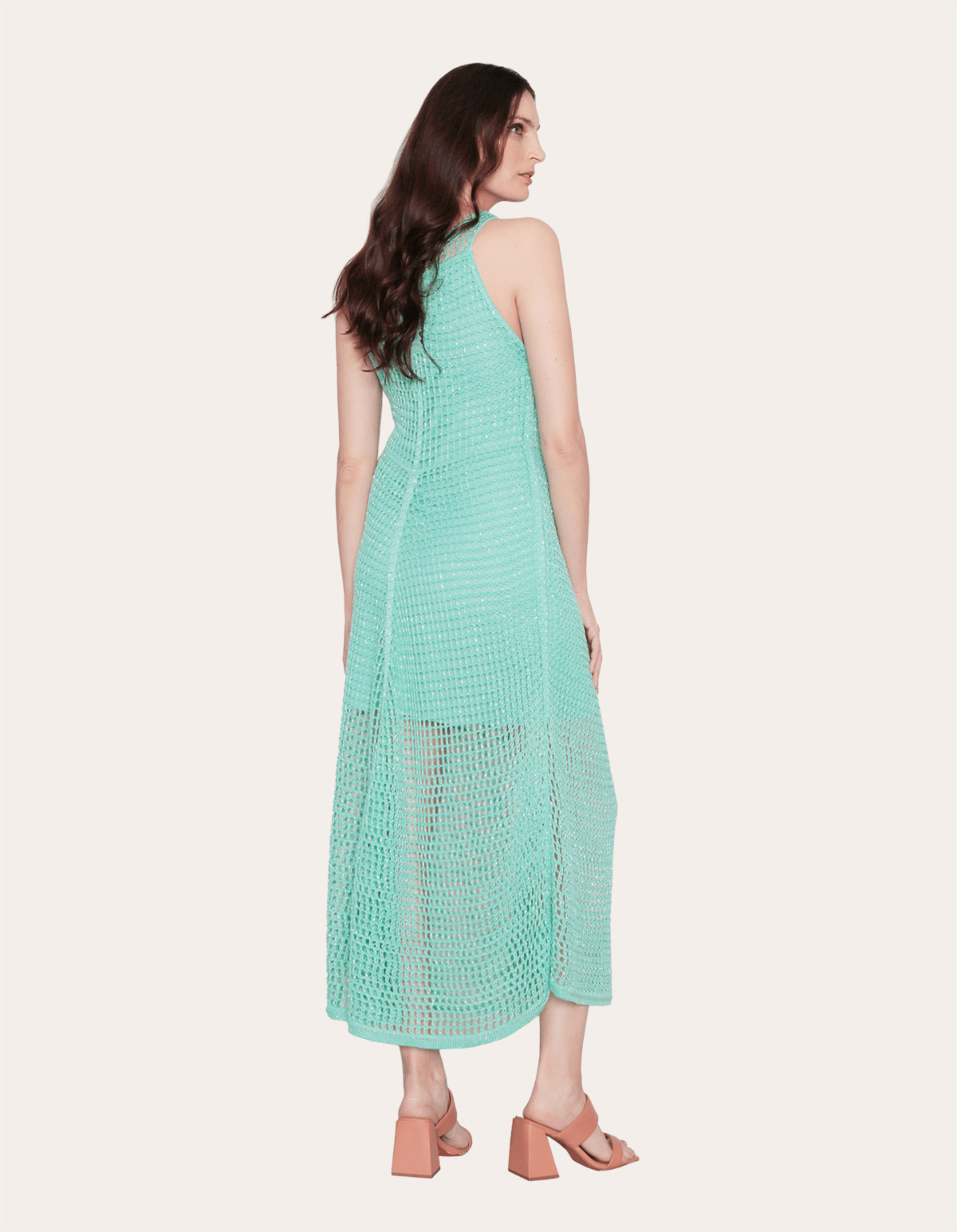 Vestido midi tricot lurex rendado