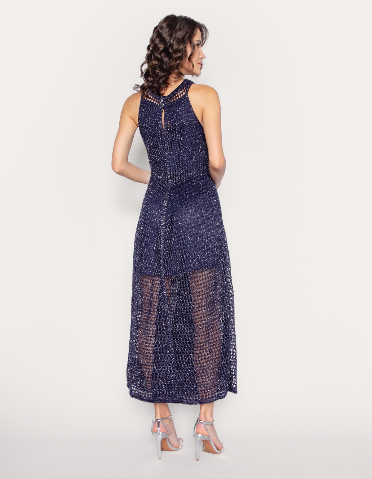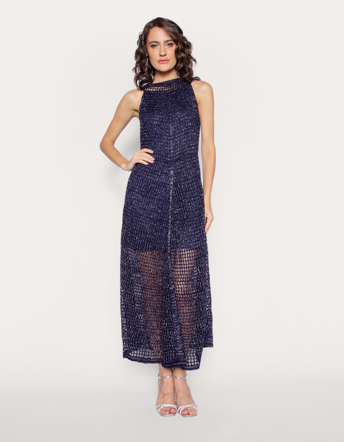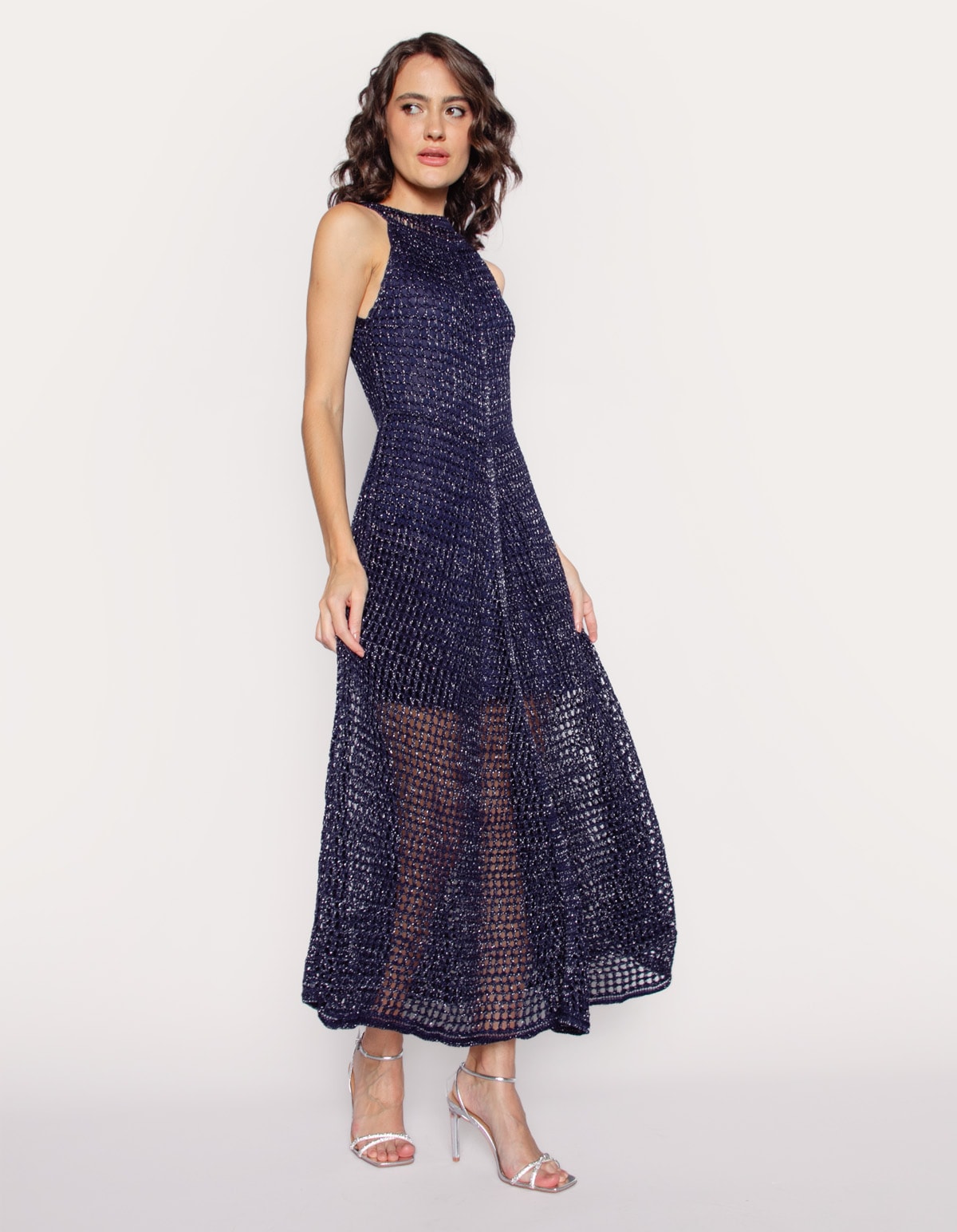 Vestido midi tricot lurex rendado